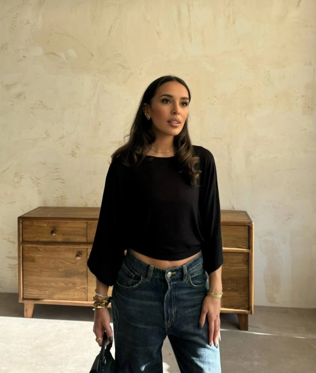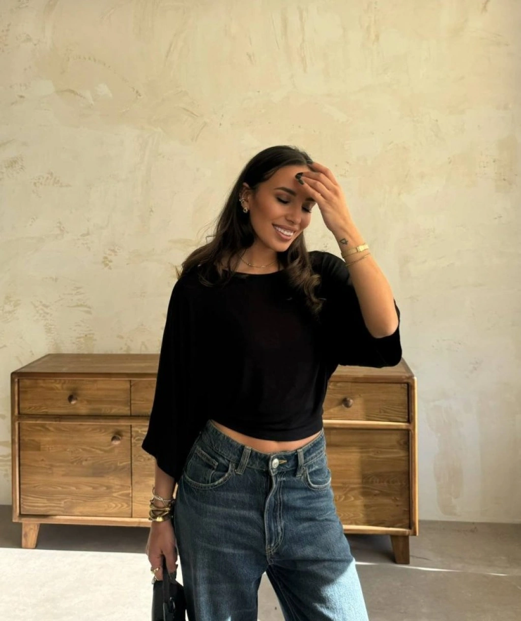 Kadın Kayık Yaka Yarasa Kol Dökümlü Kısa Bluz