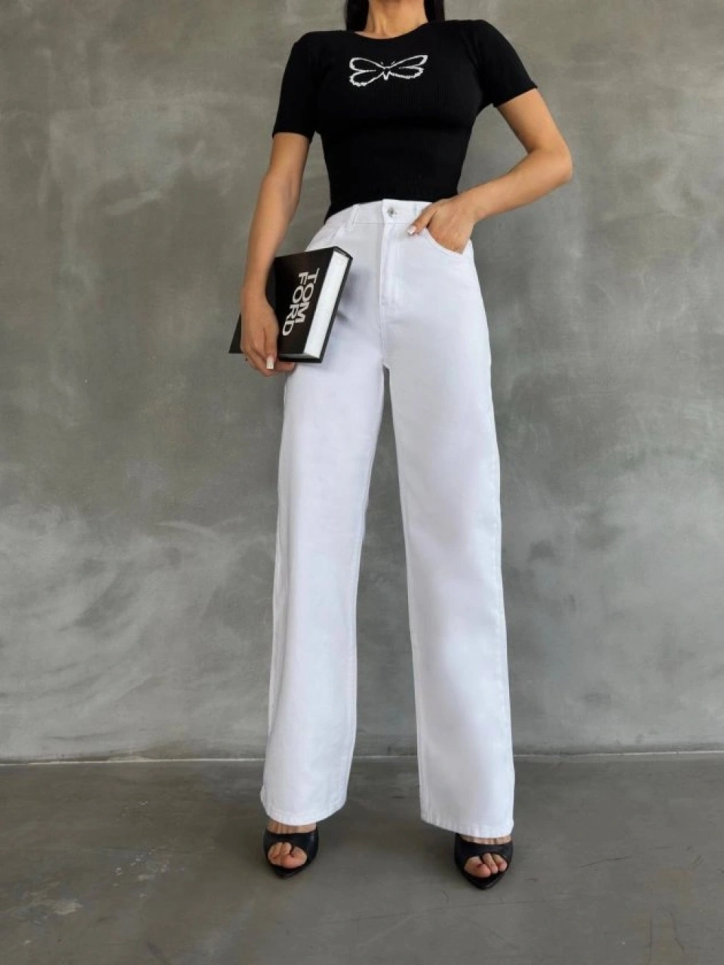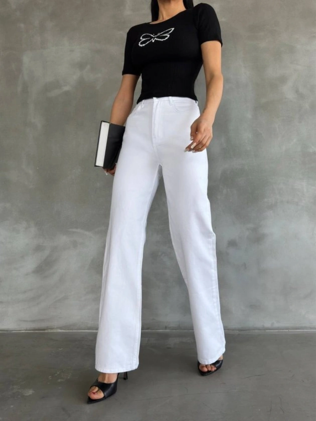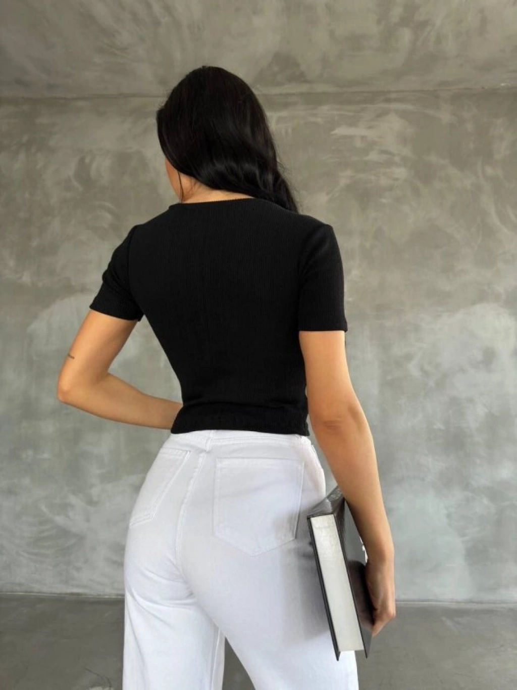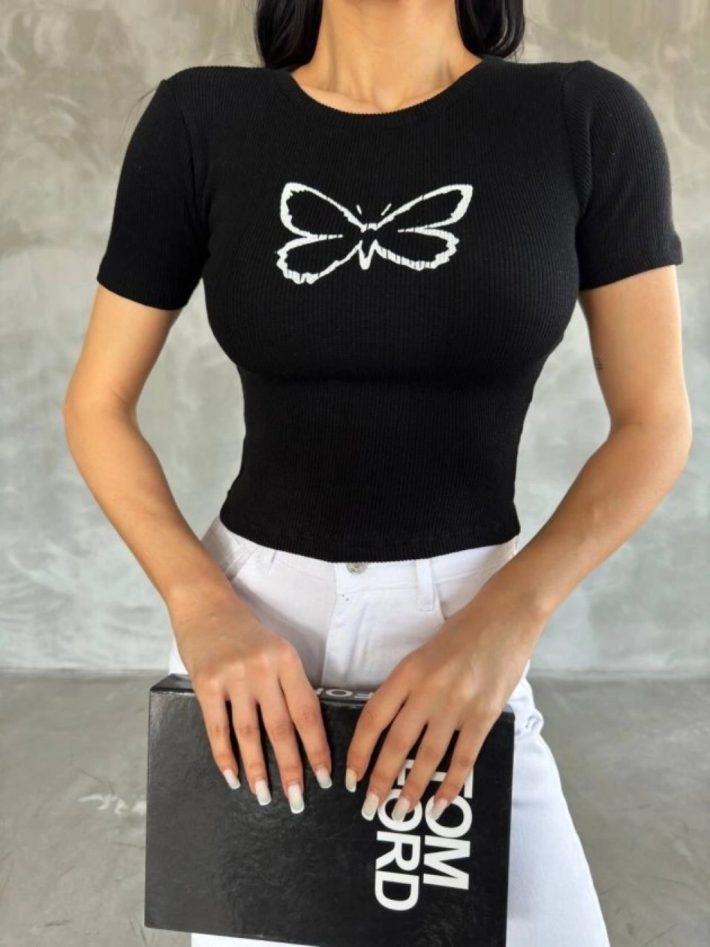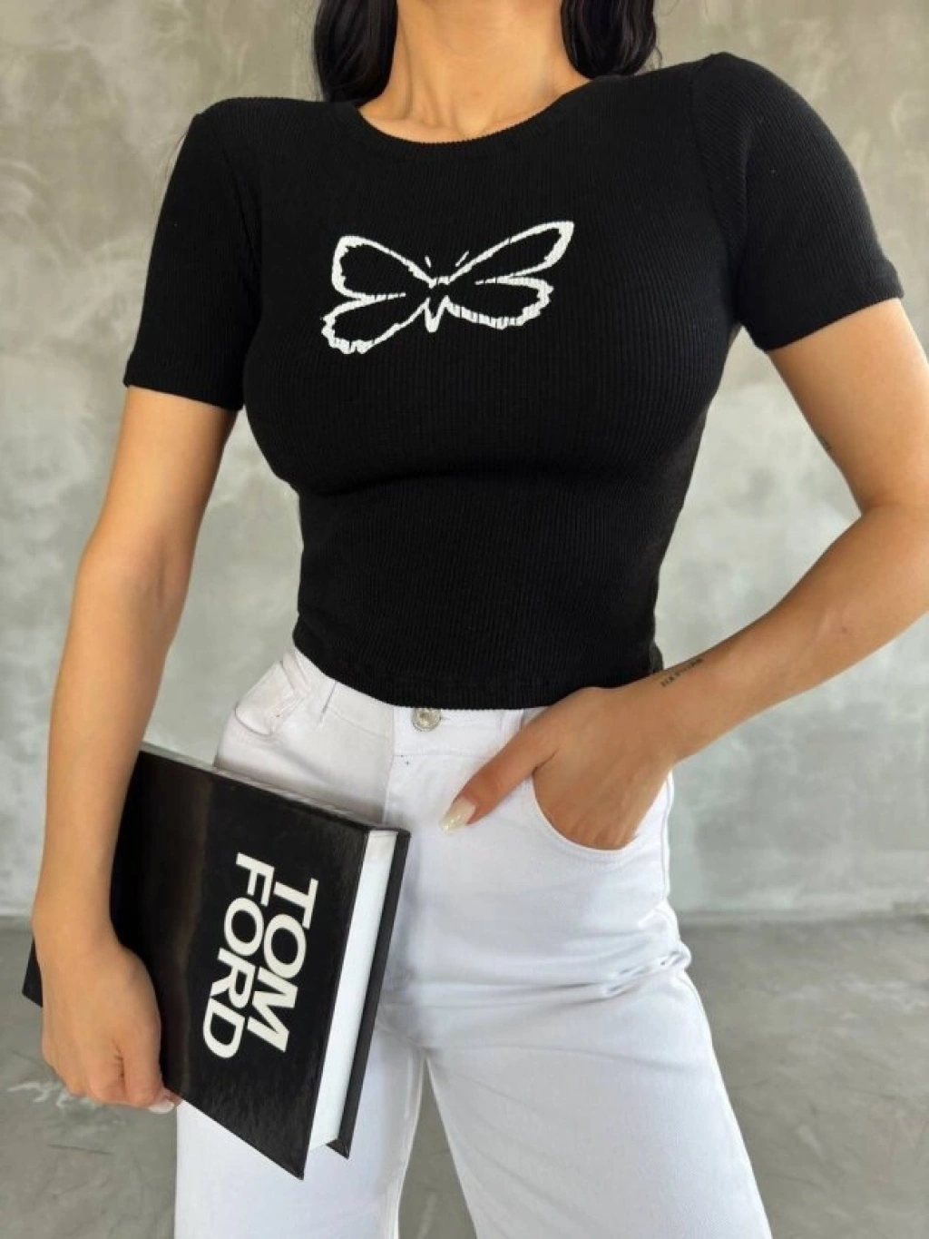 Kadın Kelebek Desenli Bisiklet Yaka Fit Bluz