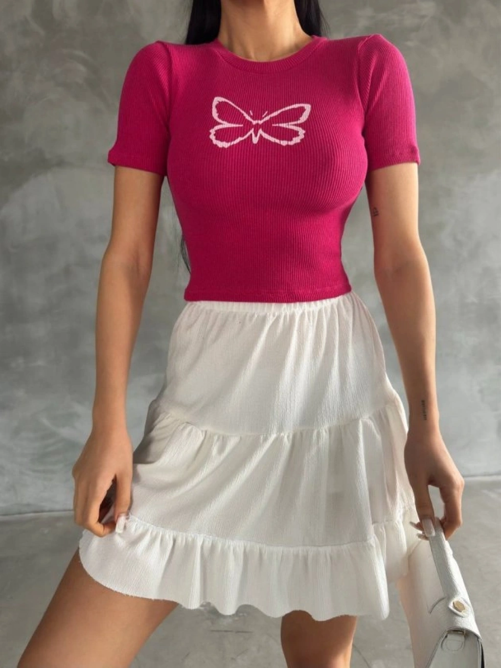 Kadın Kelebek Desenli Bisiklet Yaka Fit Bluz