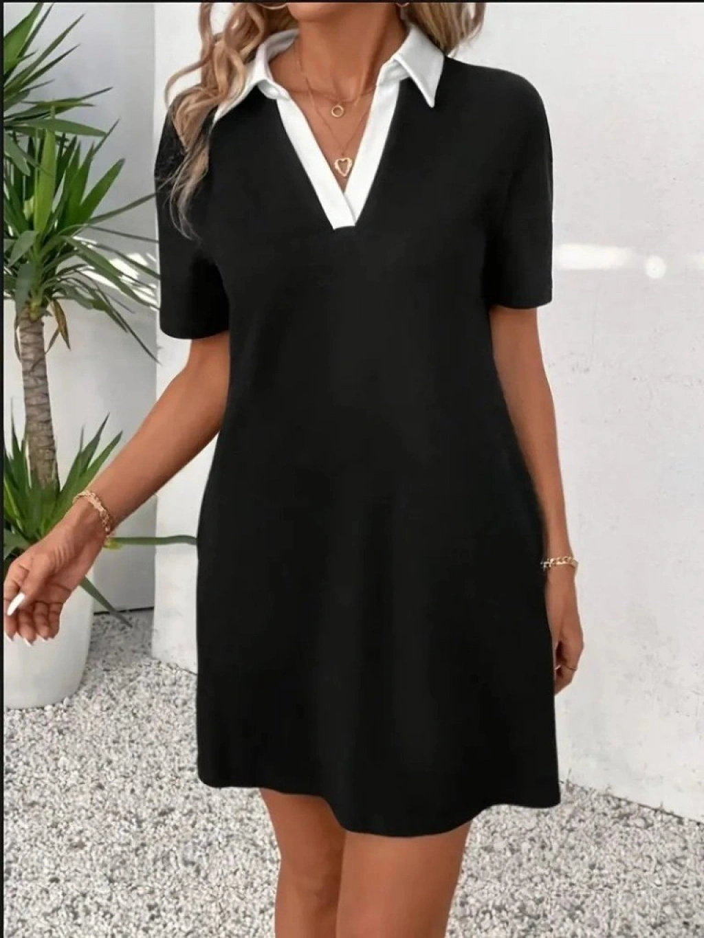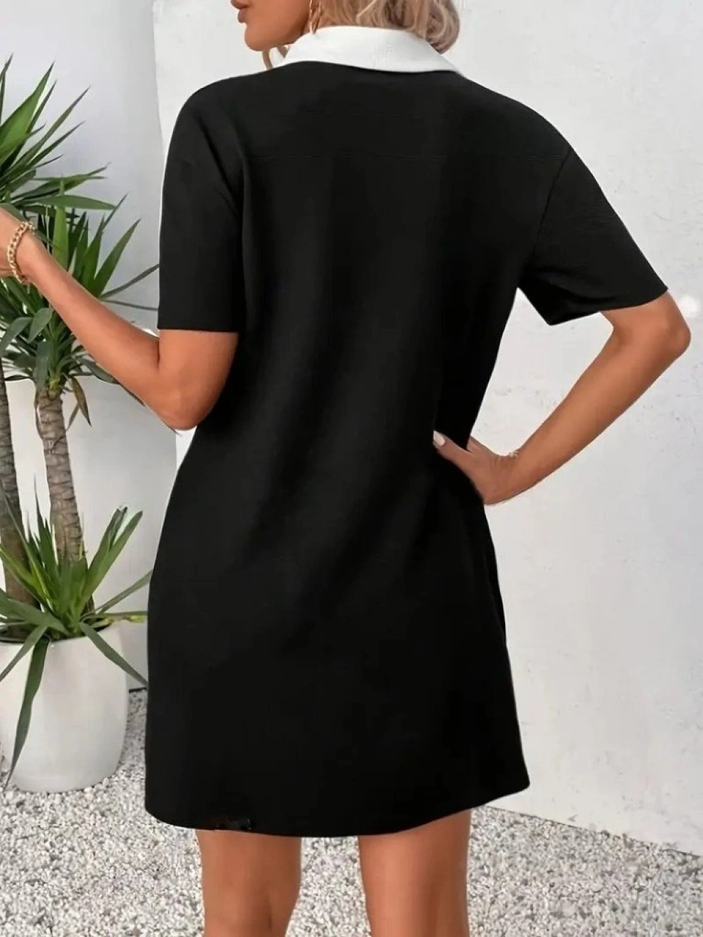 Kadın Kısa Boylu Yakalı Blok Renkli Ithal Krep Elbise