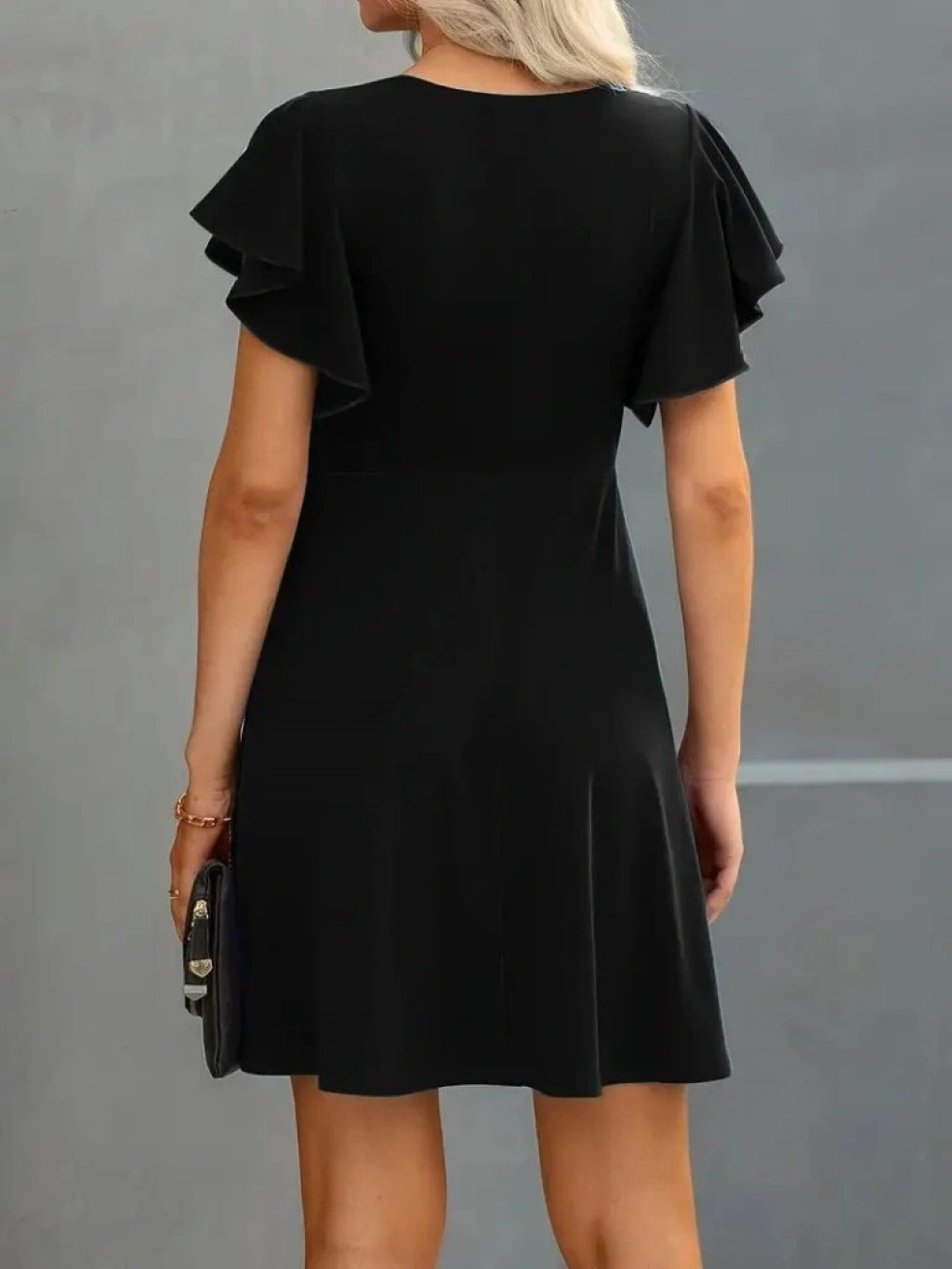 Kadın Kısa Kelebek Kollu Bisiklet Yaka Janjan Krep Elbise