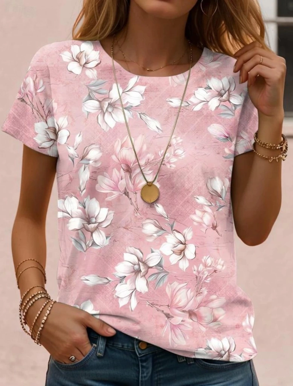 Kadın Kısa Kollu Bisiklet Yaka çiçek Desenli Viskon Bluz