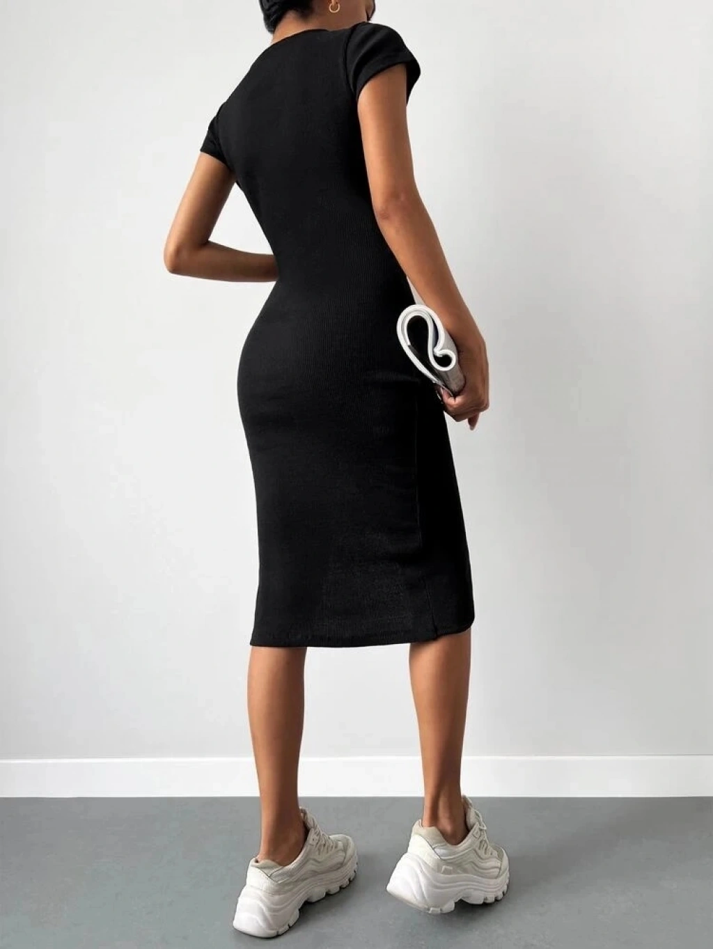 Kadın Kısa Kollu Bisiklet Yaka Derin Yırtmaçlı Kaşkorse Elbise