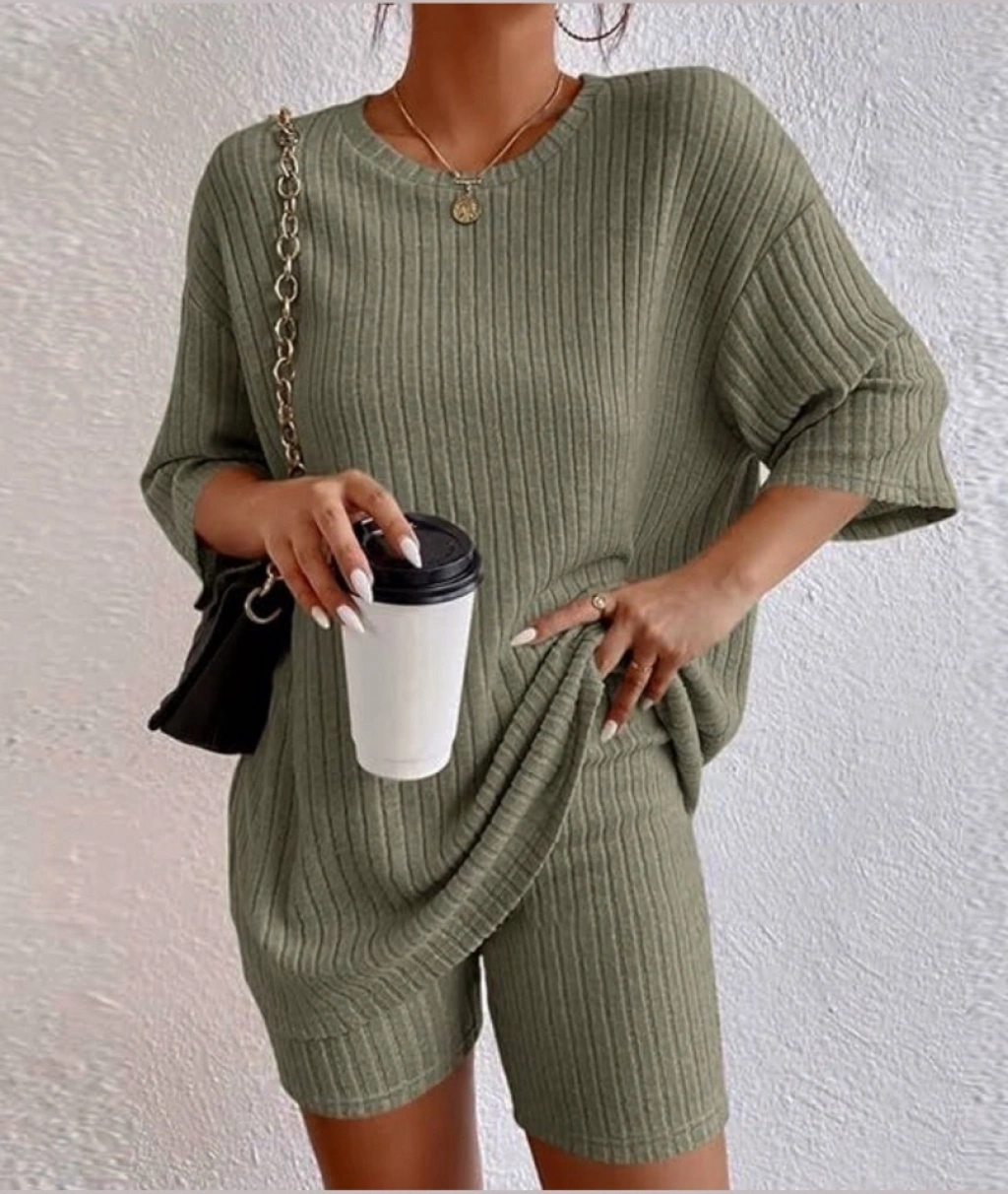 Kadın Kısa Kollu Bisiklet Yaka Kaşkorse Bluz şort Ikili Takım