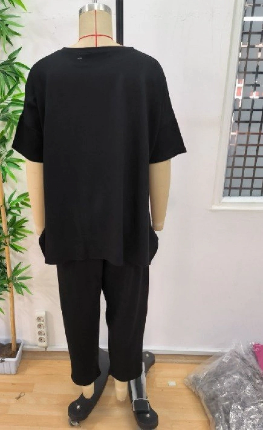 Kadın Kısa Kollu Bisiklet Yaka Viskon Iki Iplik Bluz Ve Pantolon Ikili Takım