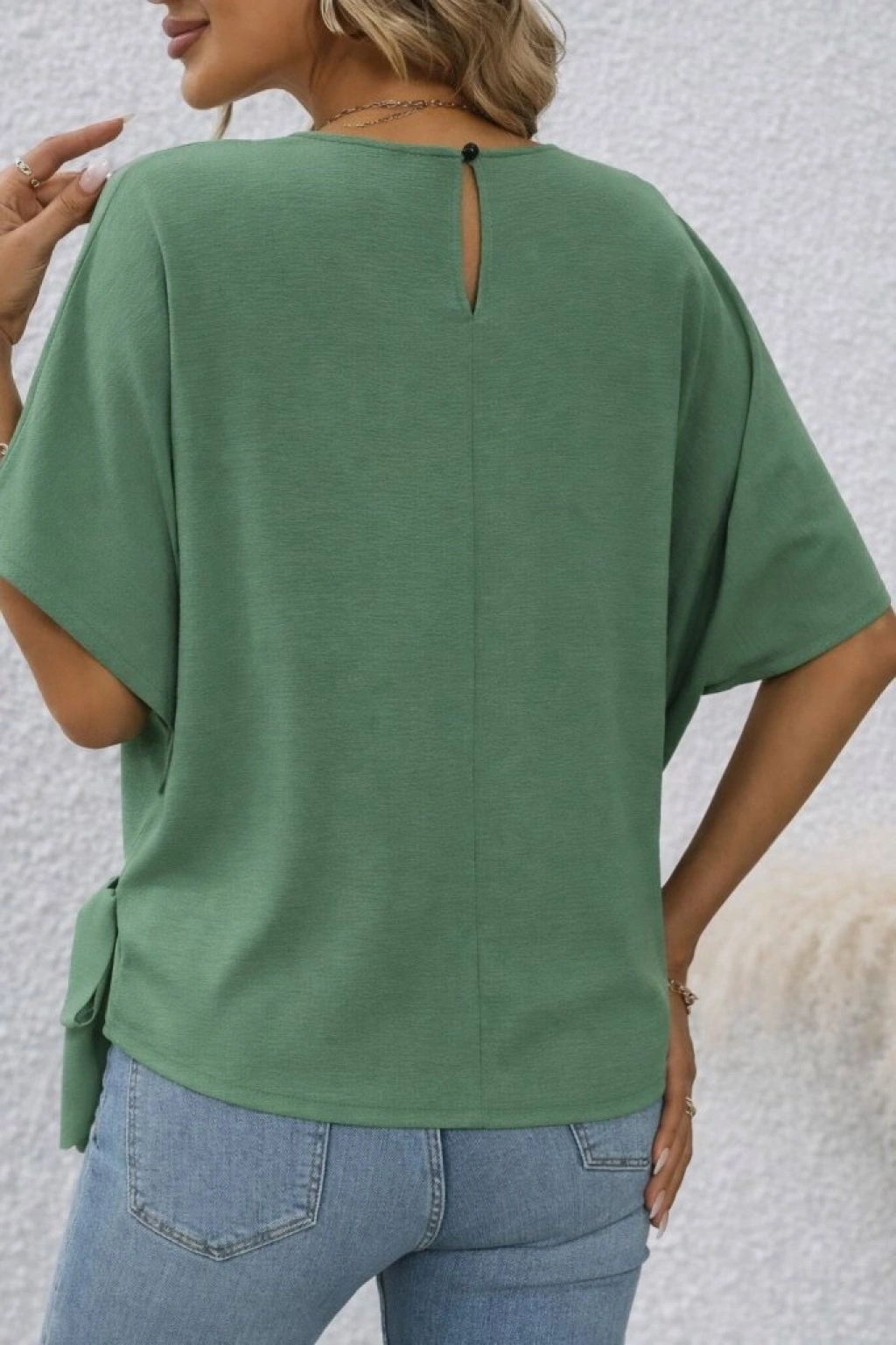 Kadın Kısa Kollu Bisiklet Yaka Yandan Bağcıklı Aerobin Bluz