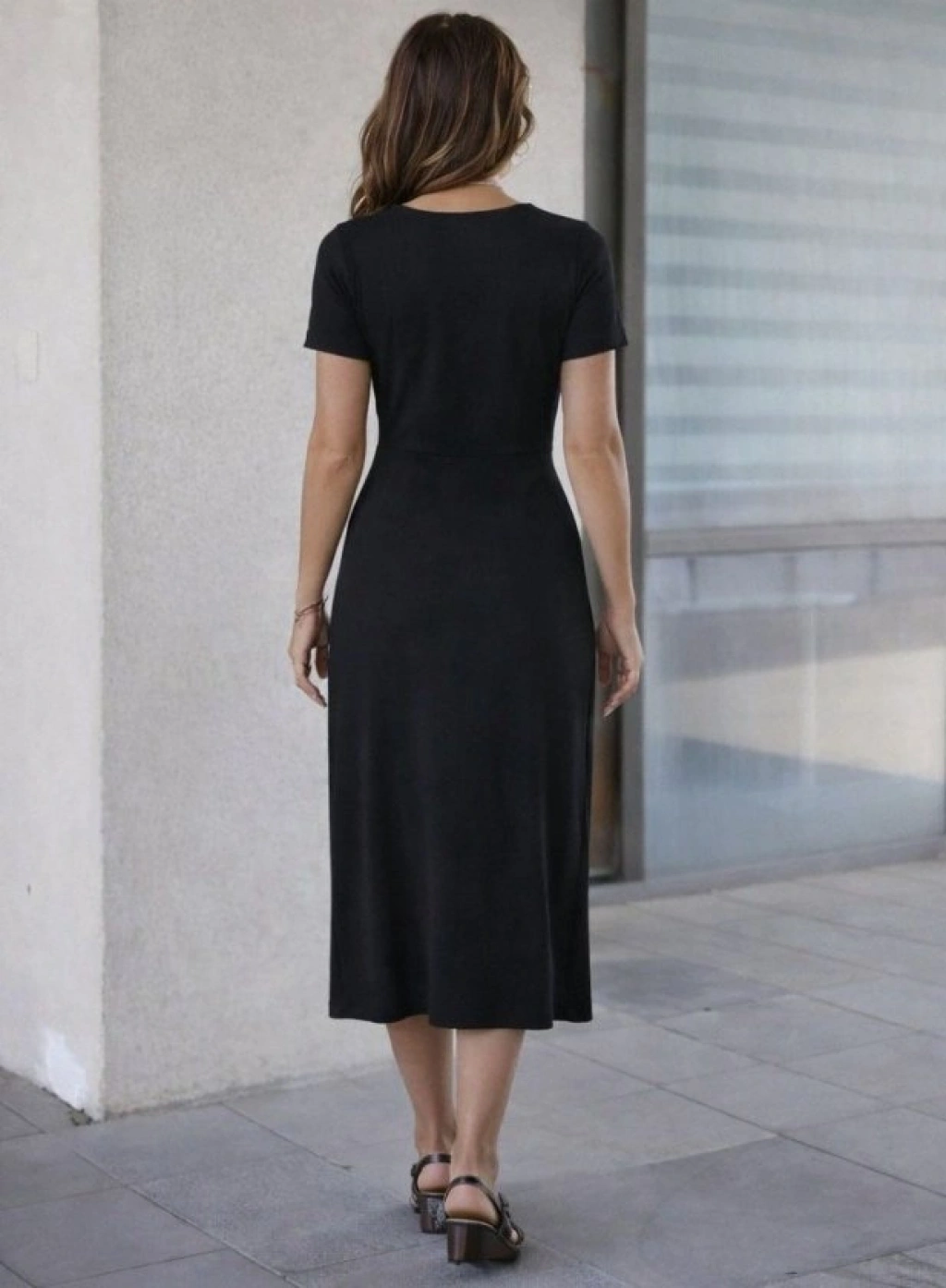 Kadın Kısa Kollu Bisiklet Yaka Yandan Yırtmaçlı Midi Viskon Elbise