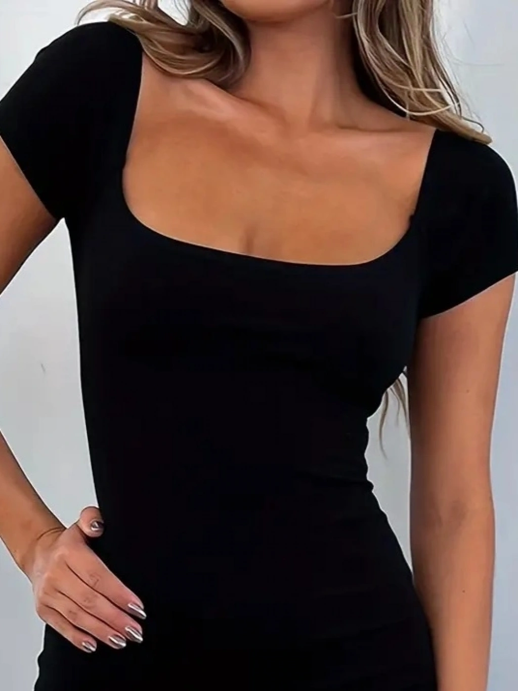 Kadın Kısa Kollu Kare Yaka Mini Bodycon Dalgıç Tulum