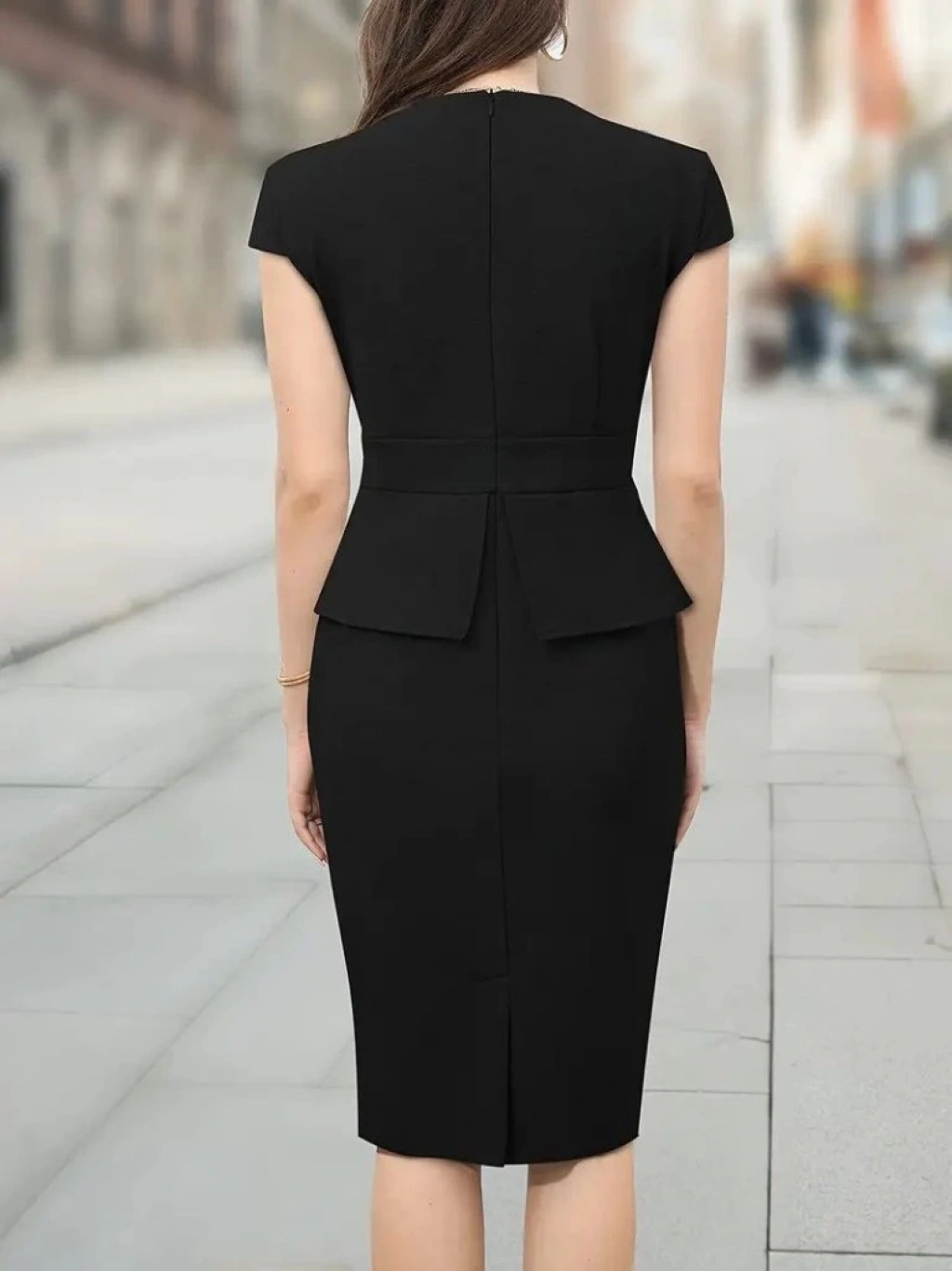Kadın Kısa Kollu Kare Yakalı Ithal Krep Elbise