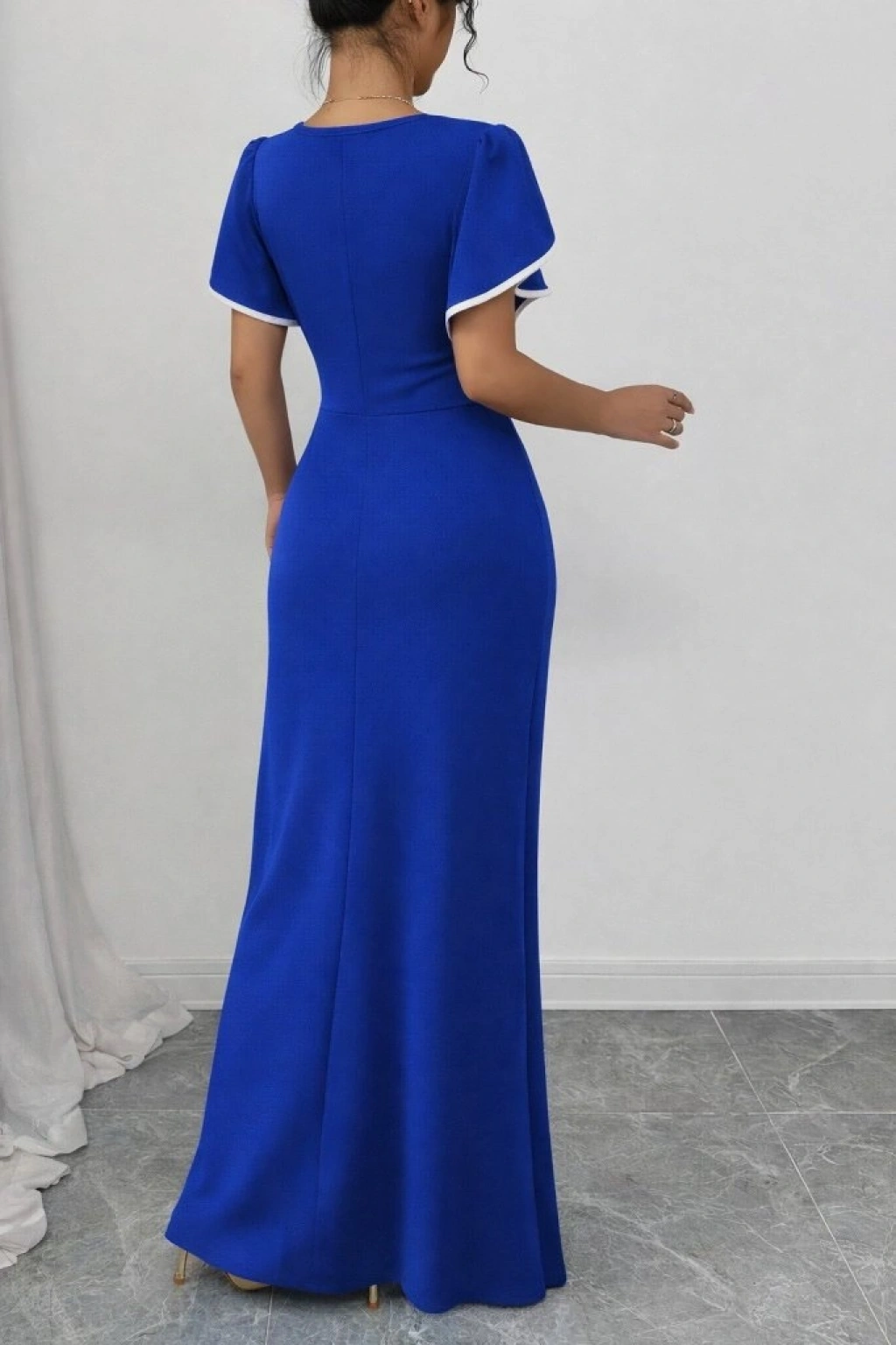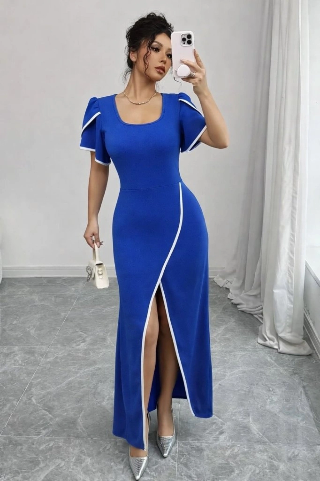 Kadın Kısa Kollu Kare Yakalı önden çapraz Kesim Detaylı Krep Elbise