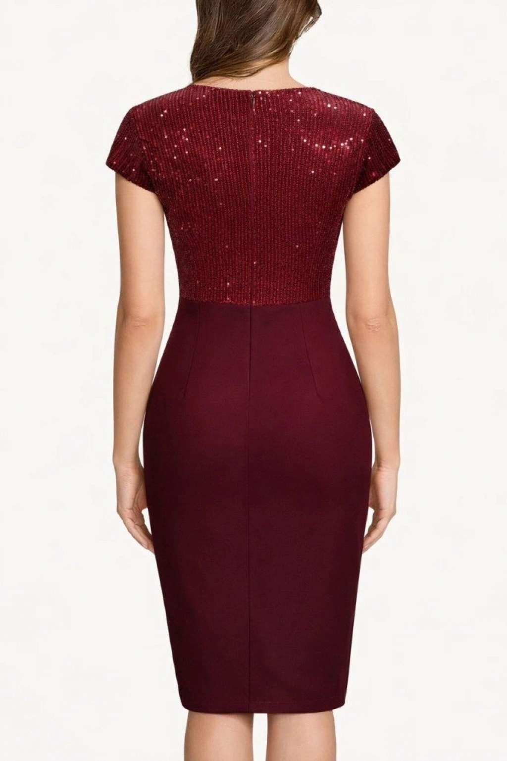 Kadın Kısa Kollu Kruvaze Yakalı ışıltı Detaylı Midi Ithal Krep Elbise
