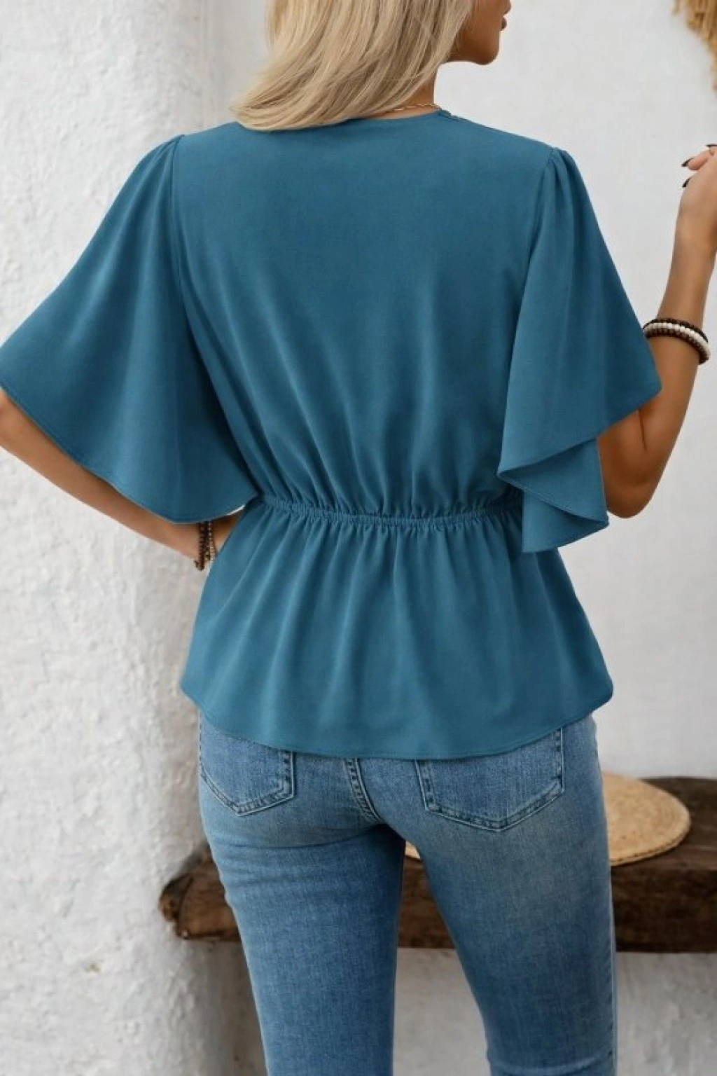 Kadın Kısa Kollu önden Düğmeli Ithal Krep Bluz