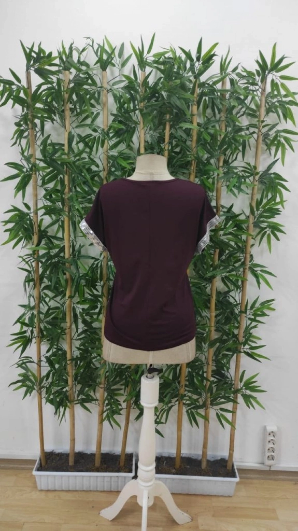 Kadın Kısa Kollu önden Fermuarlı Kol Ucu ışıltılı Viskon Bluz