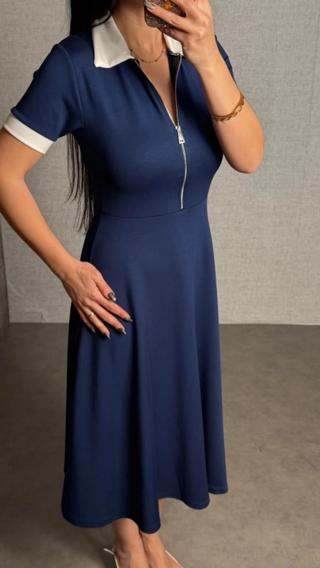 Kadın Kısa Kollu Ribana Ve Fermuar Detay Midi Boy Elbise