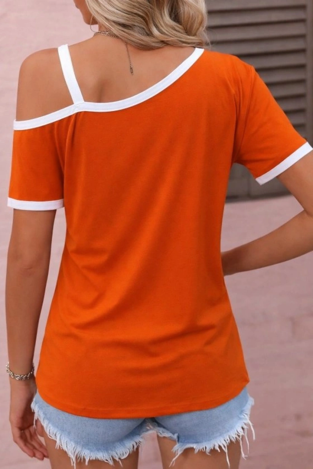 Kadın Kısa Kollu Tek Omuzu Açık Askı Toka Detaylı Viskon Bluz