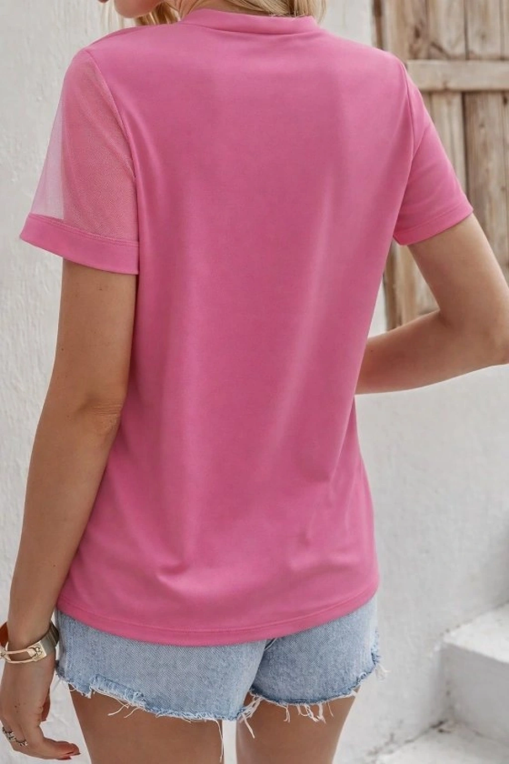 Kadın Kısa Kollu Tül Detaylı Taşlı Janjan Krep Bluz