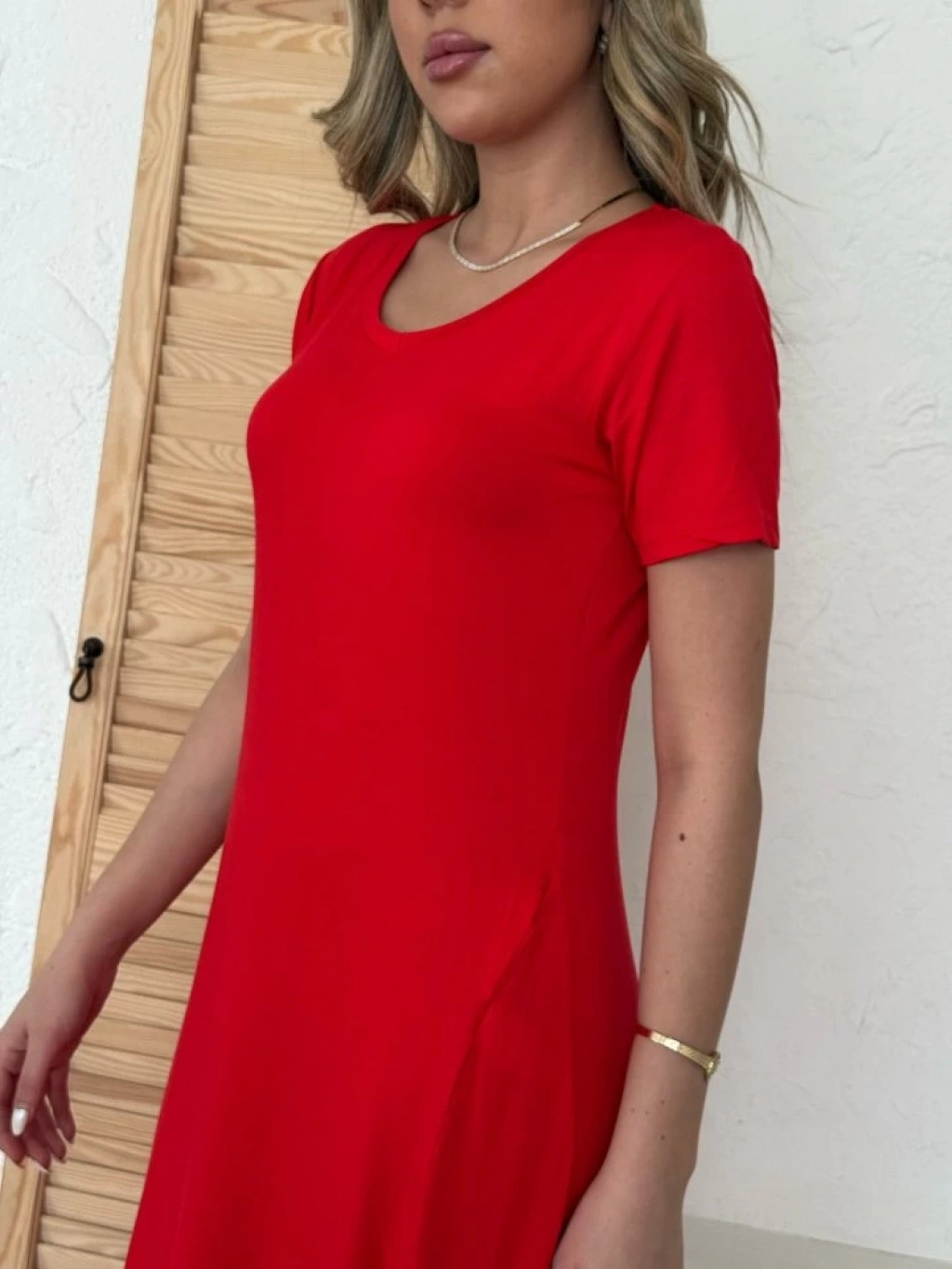 Kadın Kısa Kollu V Yaka Maxi Boy Elbise 124 Cm