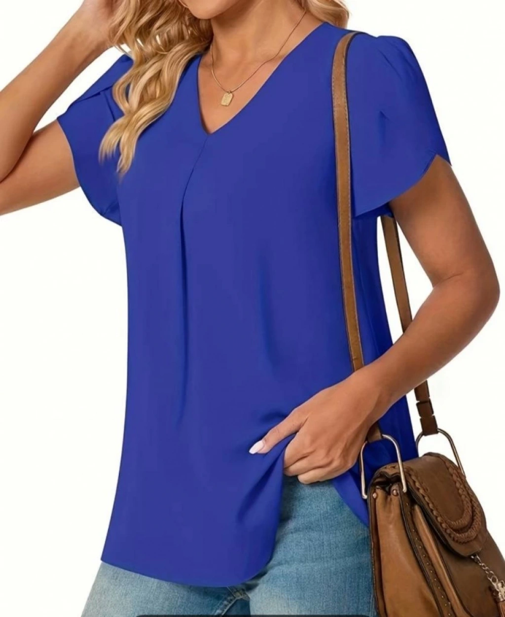 Kadın Kısa Kollu V Yaka Sandy Bluz