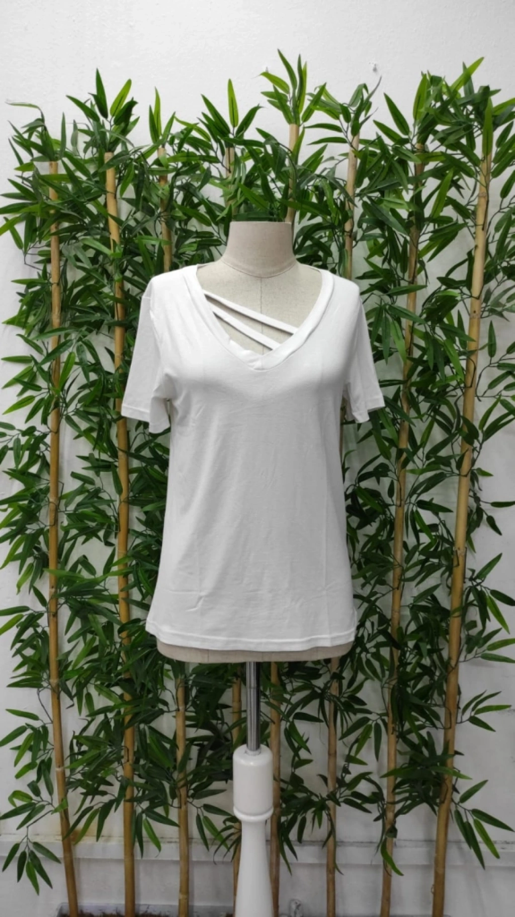 Kadın Kısa Kollu V Yaka şerit Detay Viskon Bluz