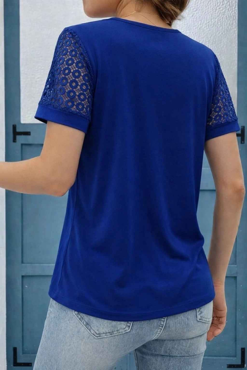 Kadın Kısa Kollu V Yakalı Dantel Detaylı Viskon Bluz