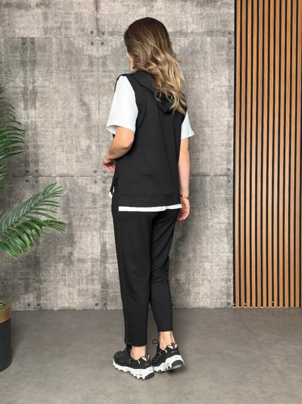 Kadın Kısa Kollu V Yakalı Kapşonlu Viskon Iki Iplik Bluz Ve Pantolon Takım