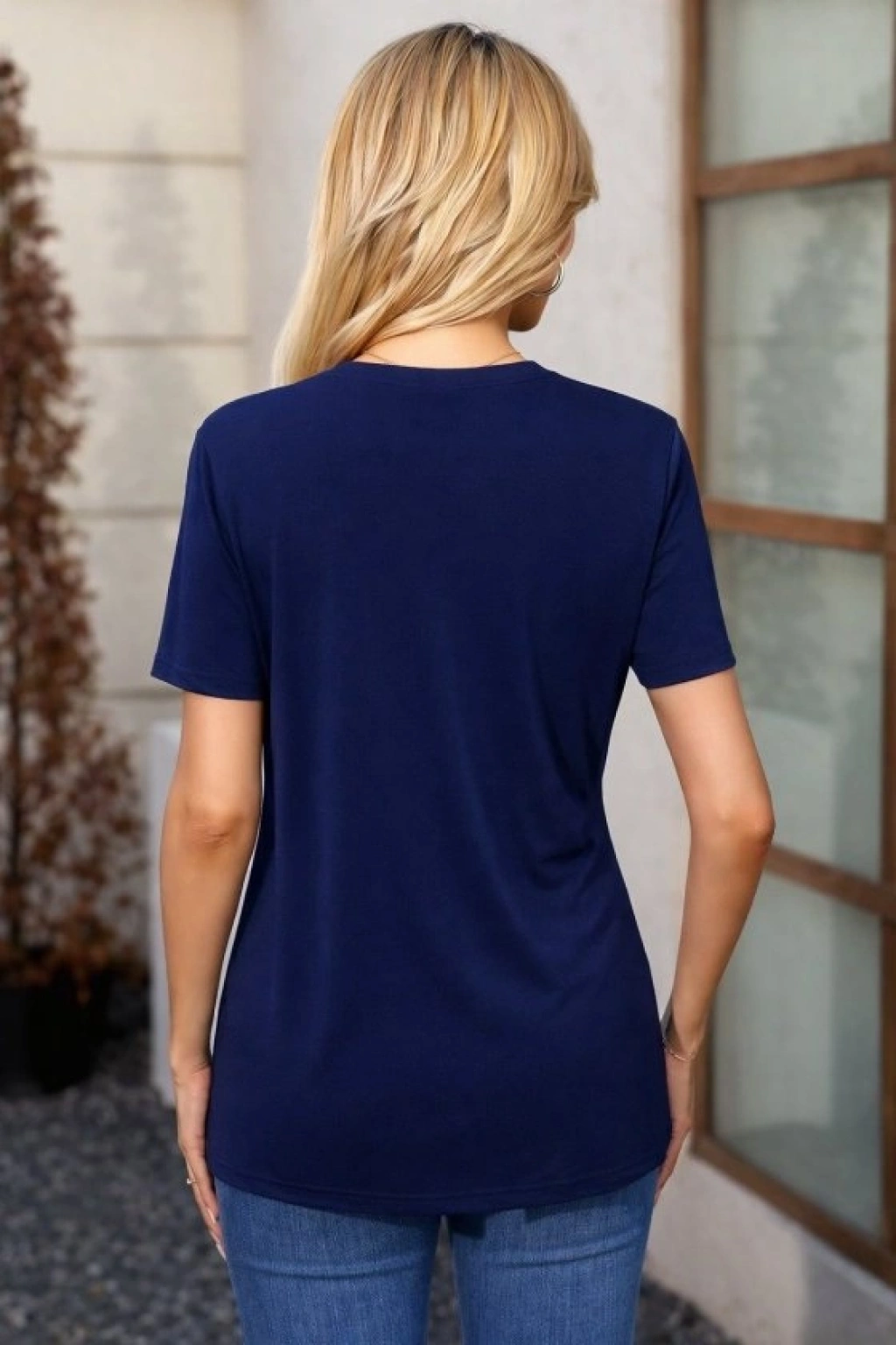 Kadın Kısa Kollu V Yakalı önü Düğmeli Viskon Bluz
