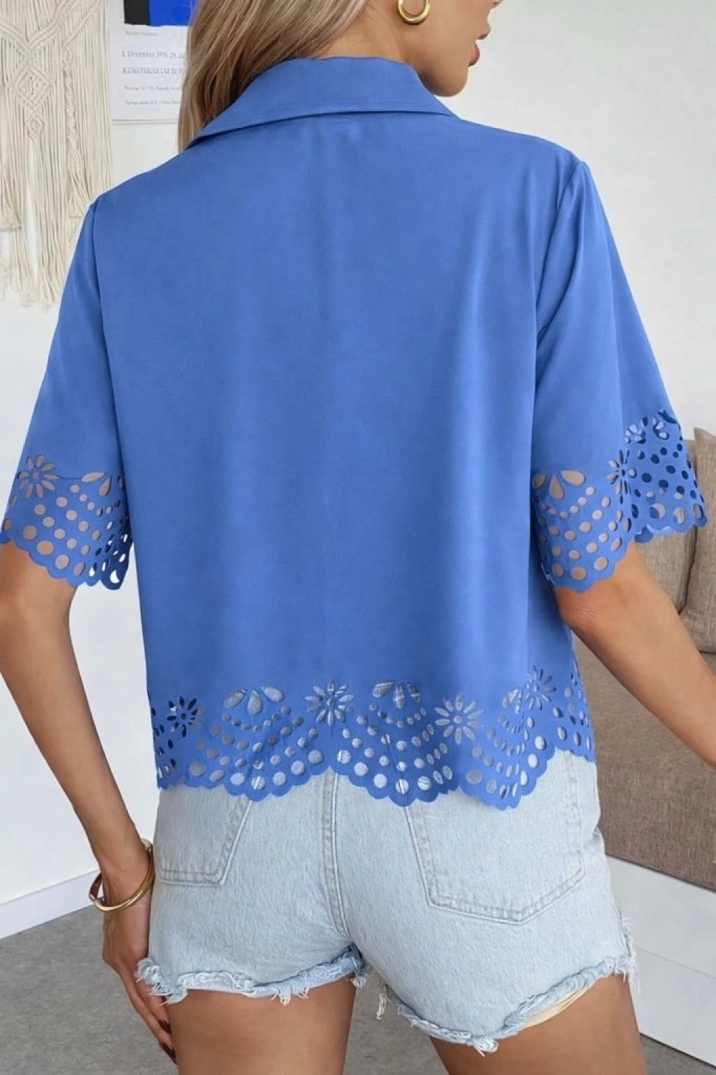 Kadın Kısa Kollu Yakalı önden Düğmeli Dubai Gömlek Bluz