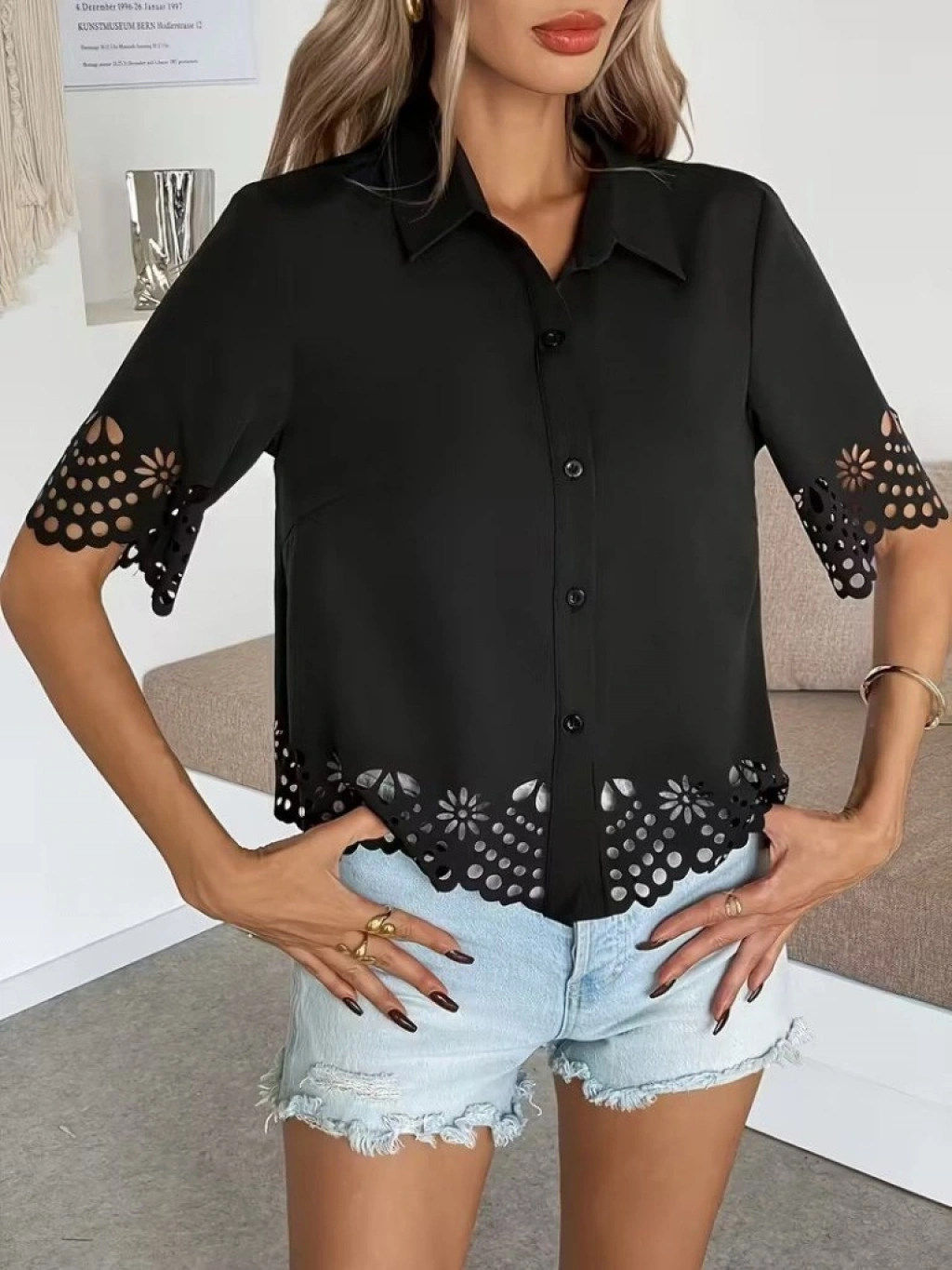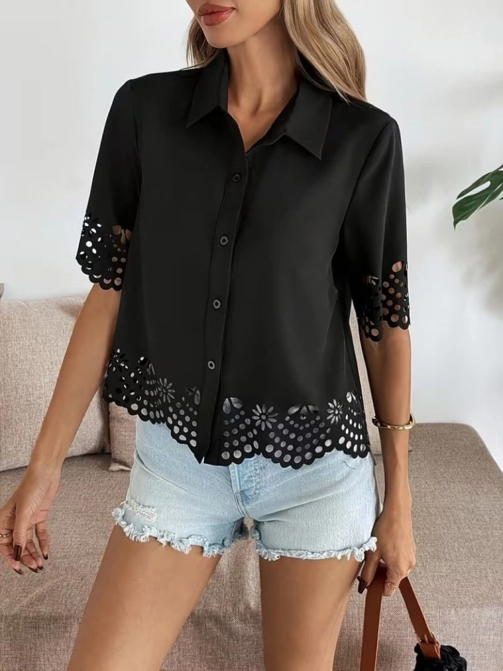Kadın Kısa Kollu Yakalı önden Düğmeli Dubai Gömlek Bluz