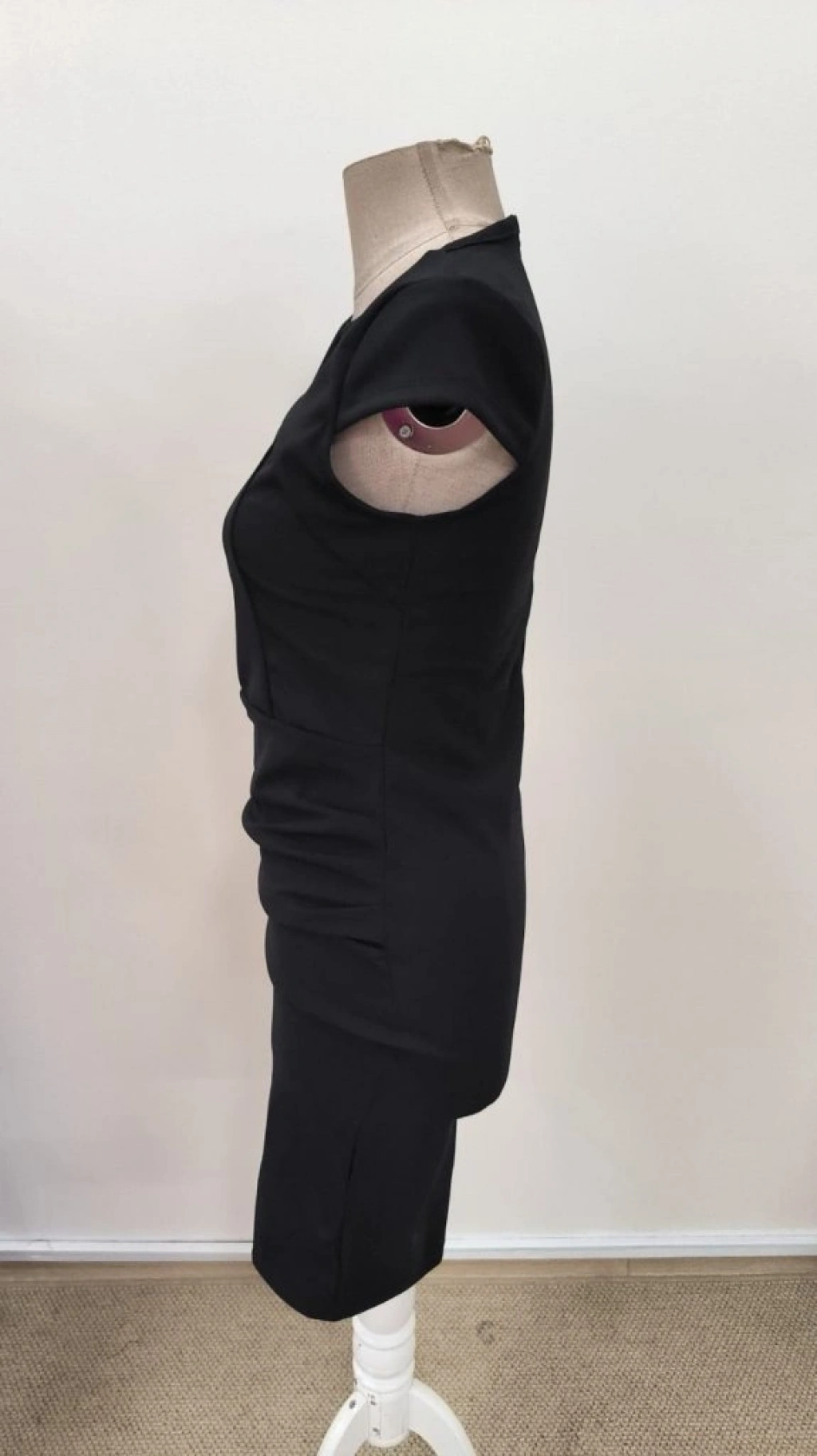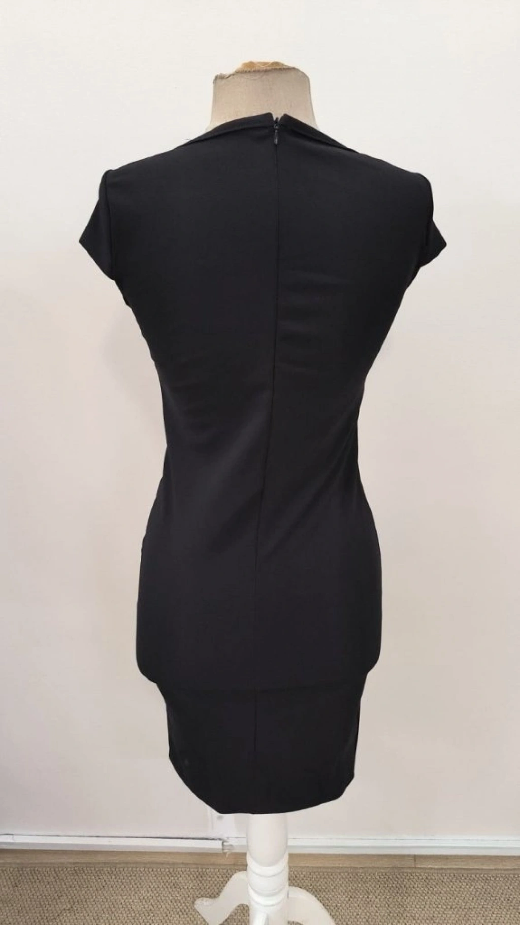 Kadın Kısa Kollu Yakası Asimetrik Kısa Ithal Krep Elbise