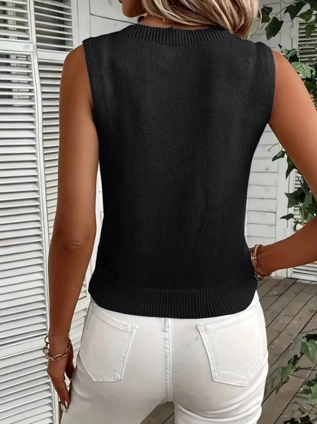 Kadın Kolsuz Bisiklet Yaka Ajurlu Triko Bluz