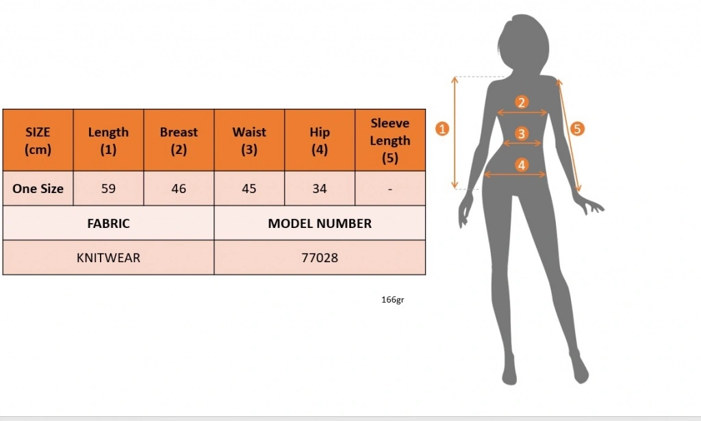 Modelin Ölçüleri: Boy:165, Kg:55, Göğüs:90, Bel:72, Kalça: 100