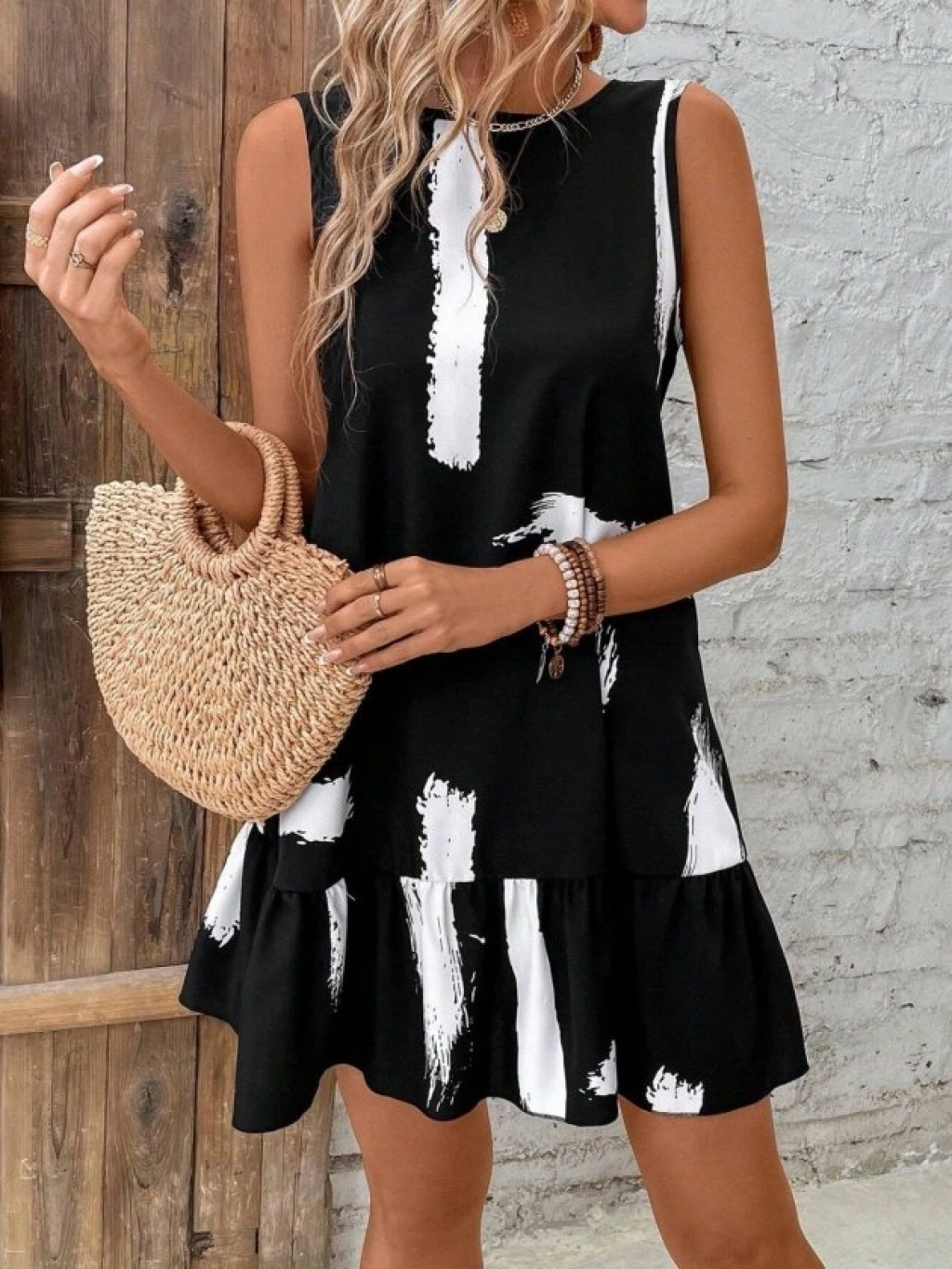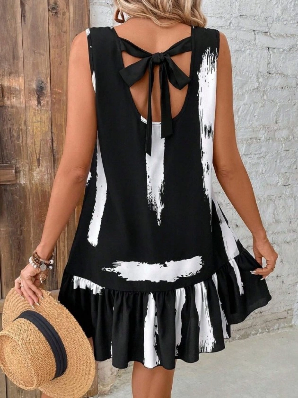 Kadın Kolsuz Bisiklet Yaka Arkadan Fiyonklu Süprem Kısa Elbise