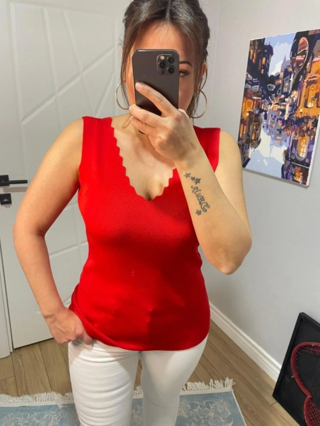 Kadın Omuz Askılı V Yaka Lazer Kesim Kaşkorse Kumaş Atlet