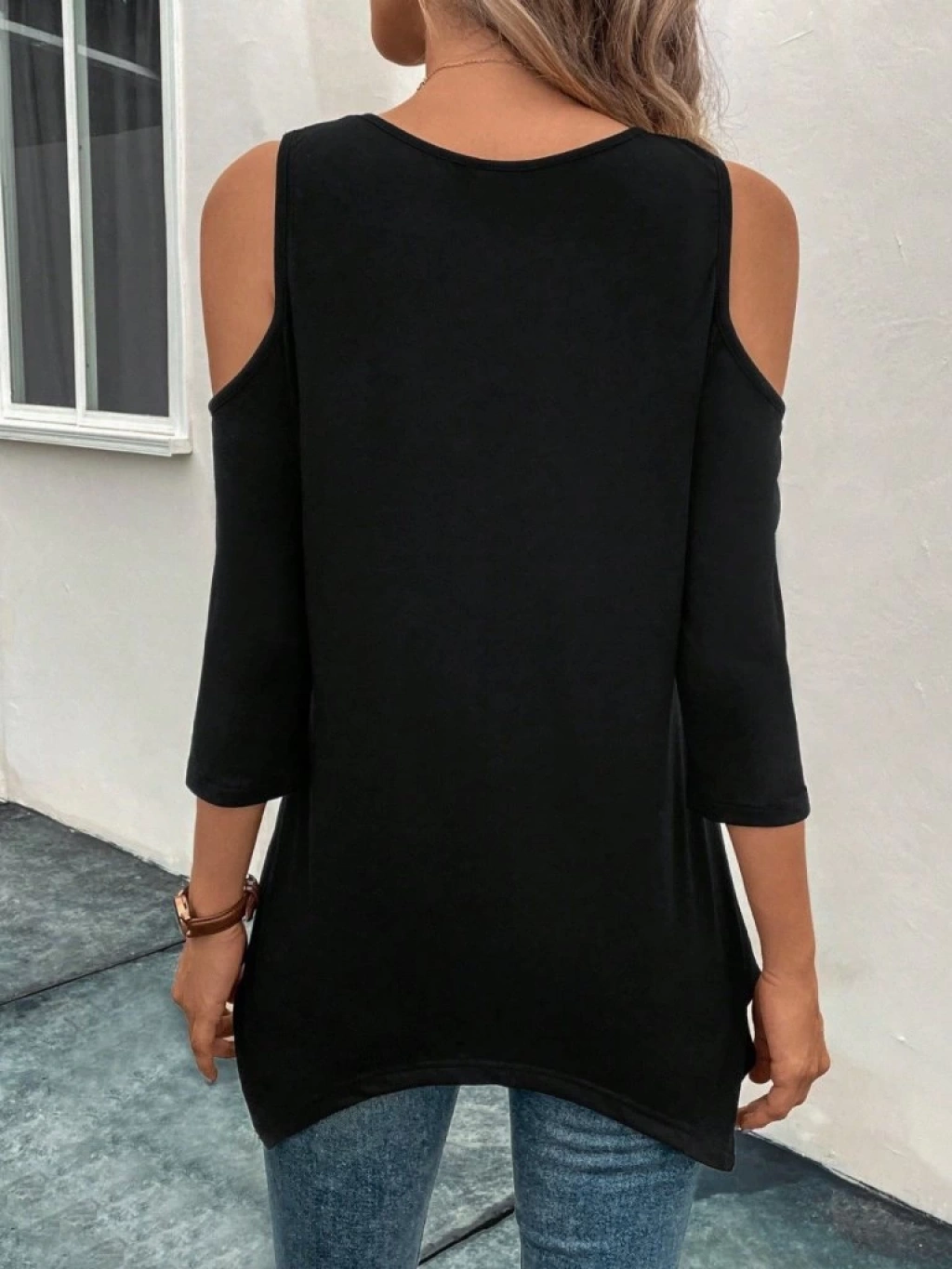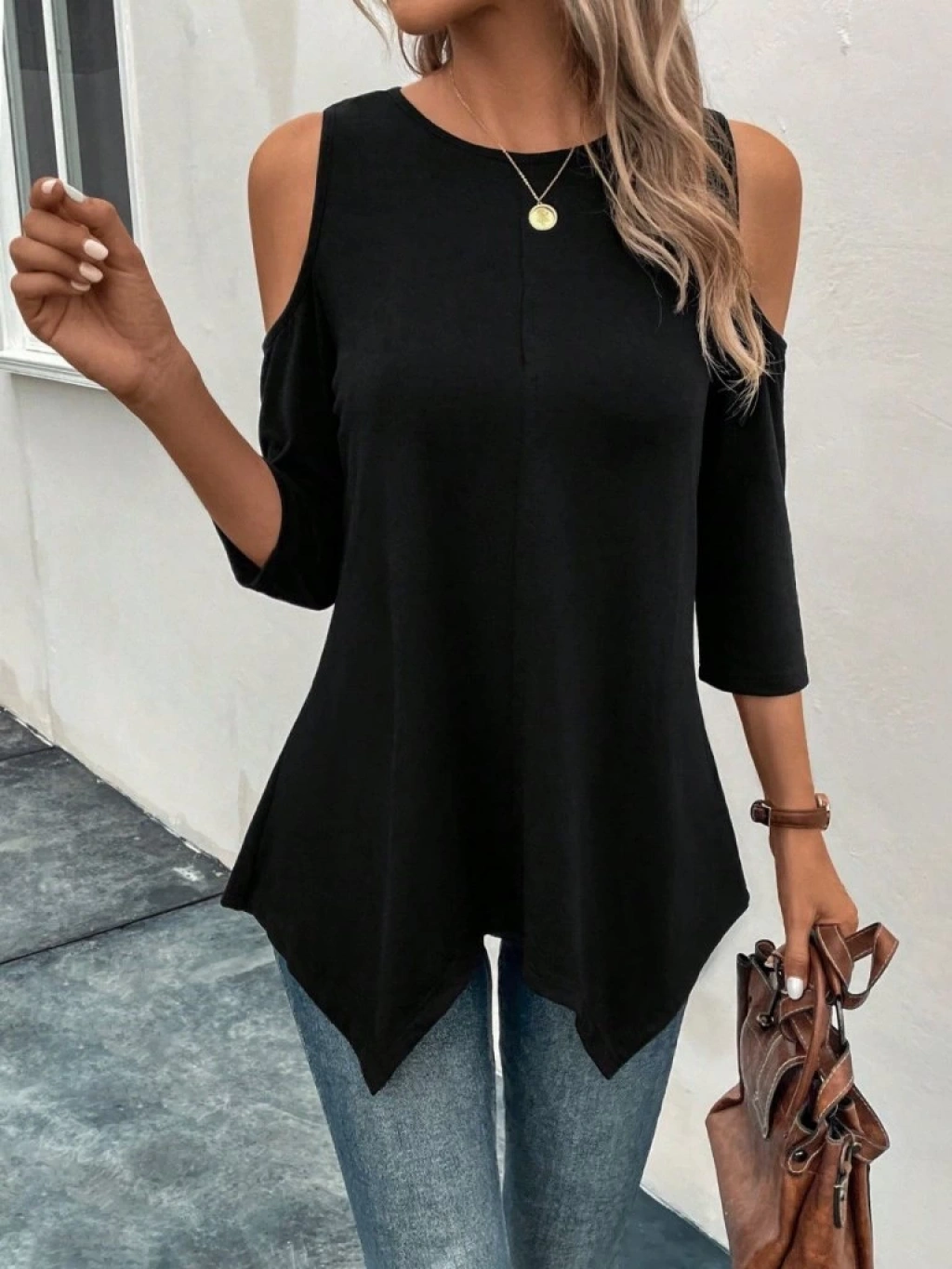 Kadın Omuzlardan Açık Sıfır Yaka Asimetrik Kesim Detay Viskon Bluz