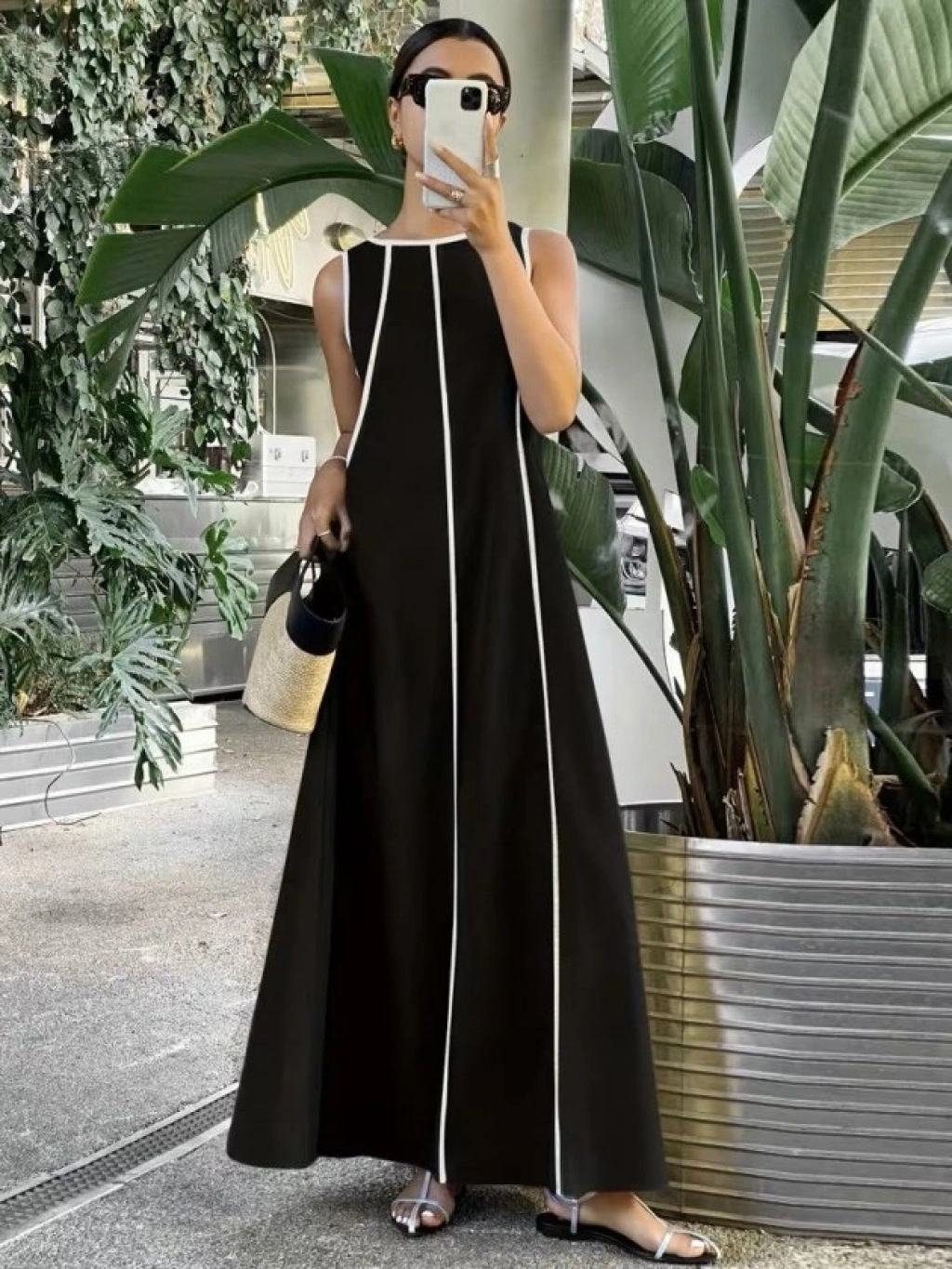 Kadın Omuzlardan Açık Yaka Ince şerit Detaylı Uzun Viskon Elbise
