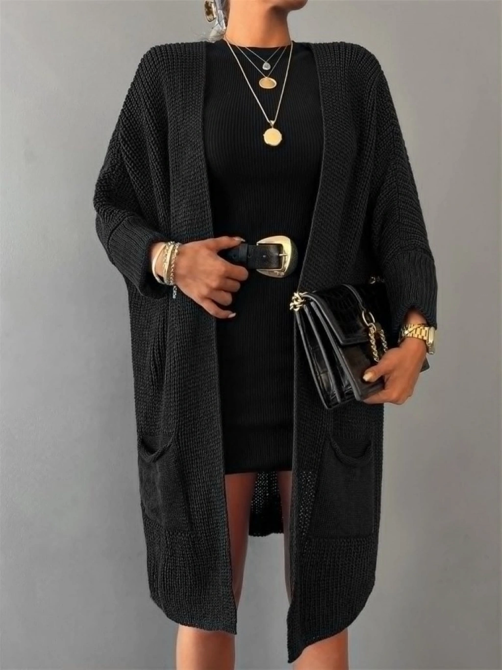 Kadın Oversize Kalıp Cep Detay Salaş Triko Hırka