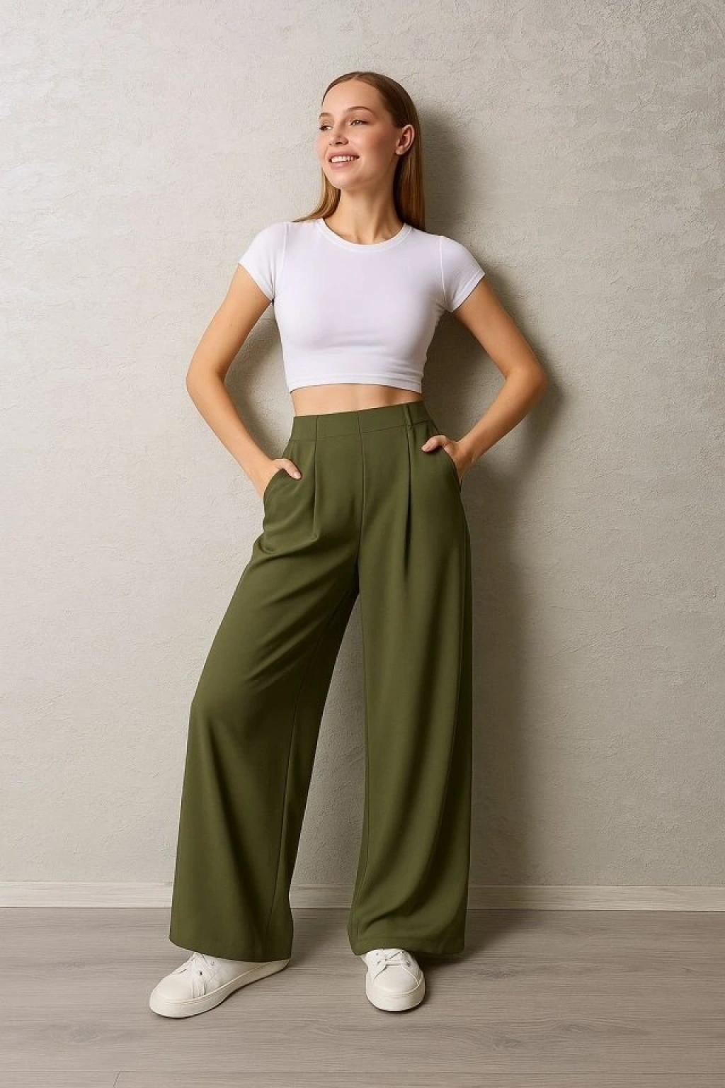 Kadın Pileli Gizli Cep Detay Salaş Pantolon