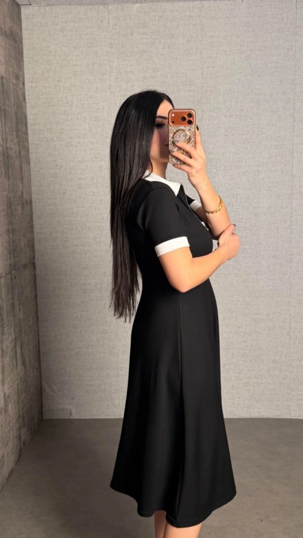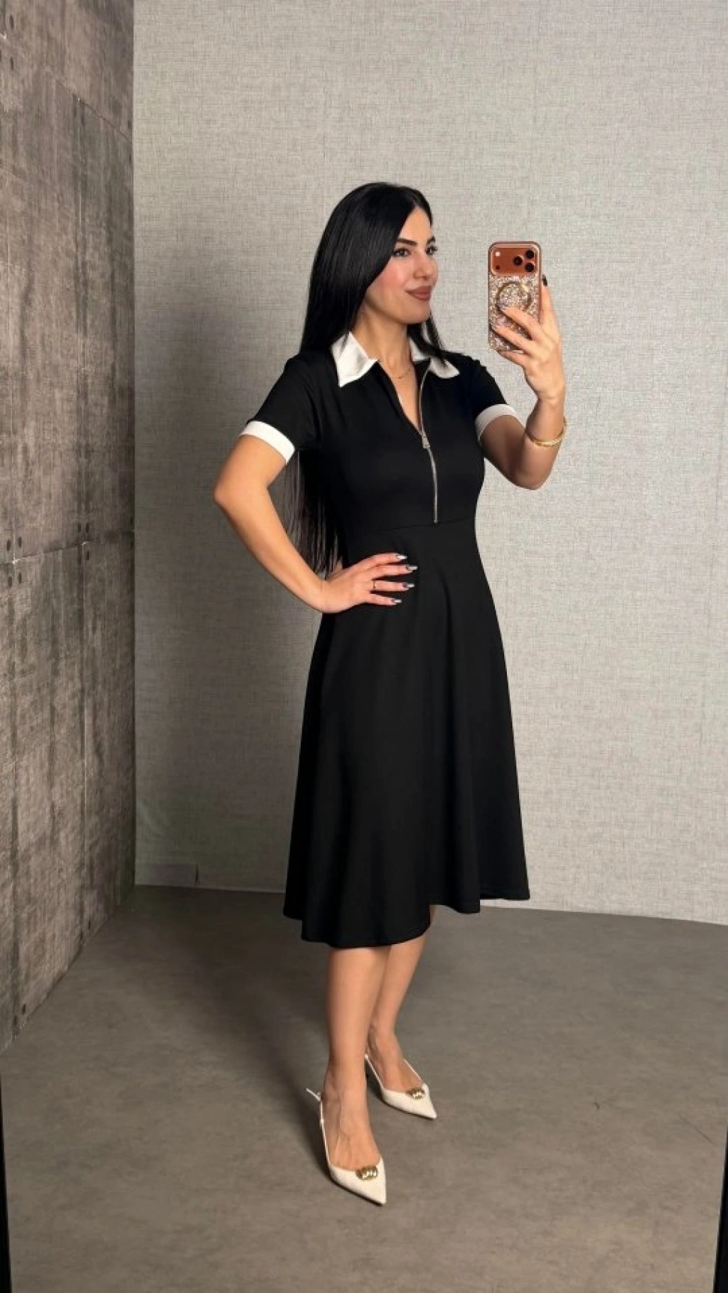 Kadın Polo Yaka Fermuar Detaylı Modal Midi Elbise
