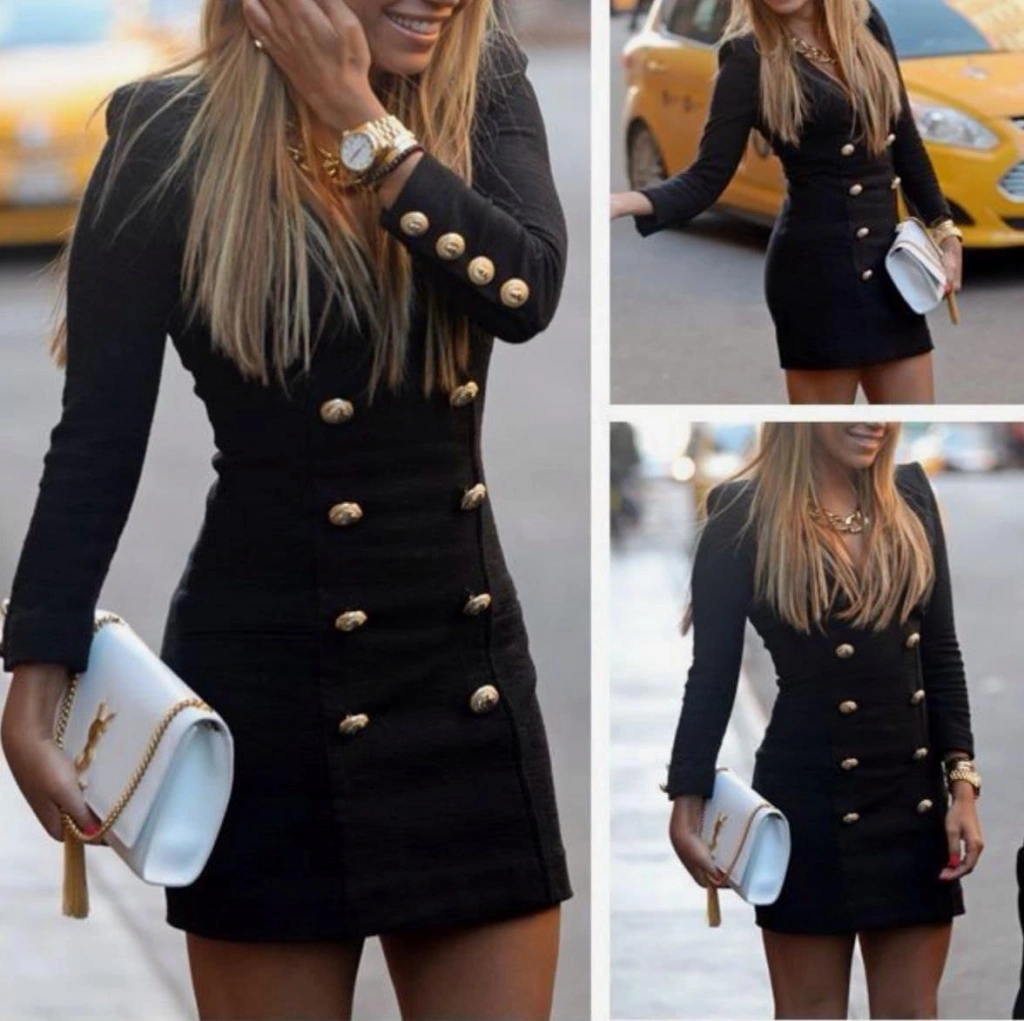 Kadın Scuba Dalgıç Kumaş Dugme Detaylı Mini Elbise