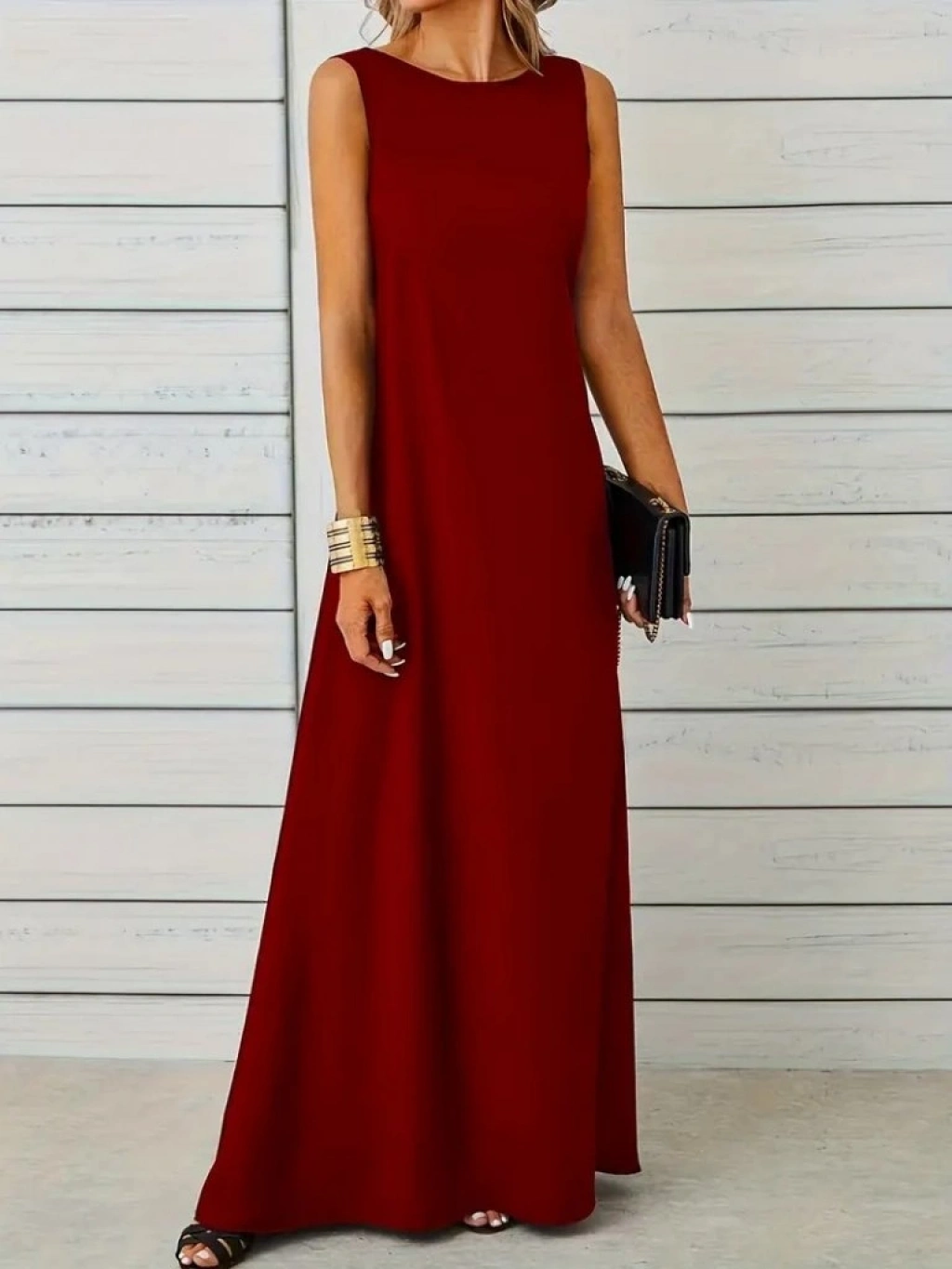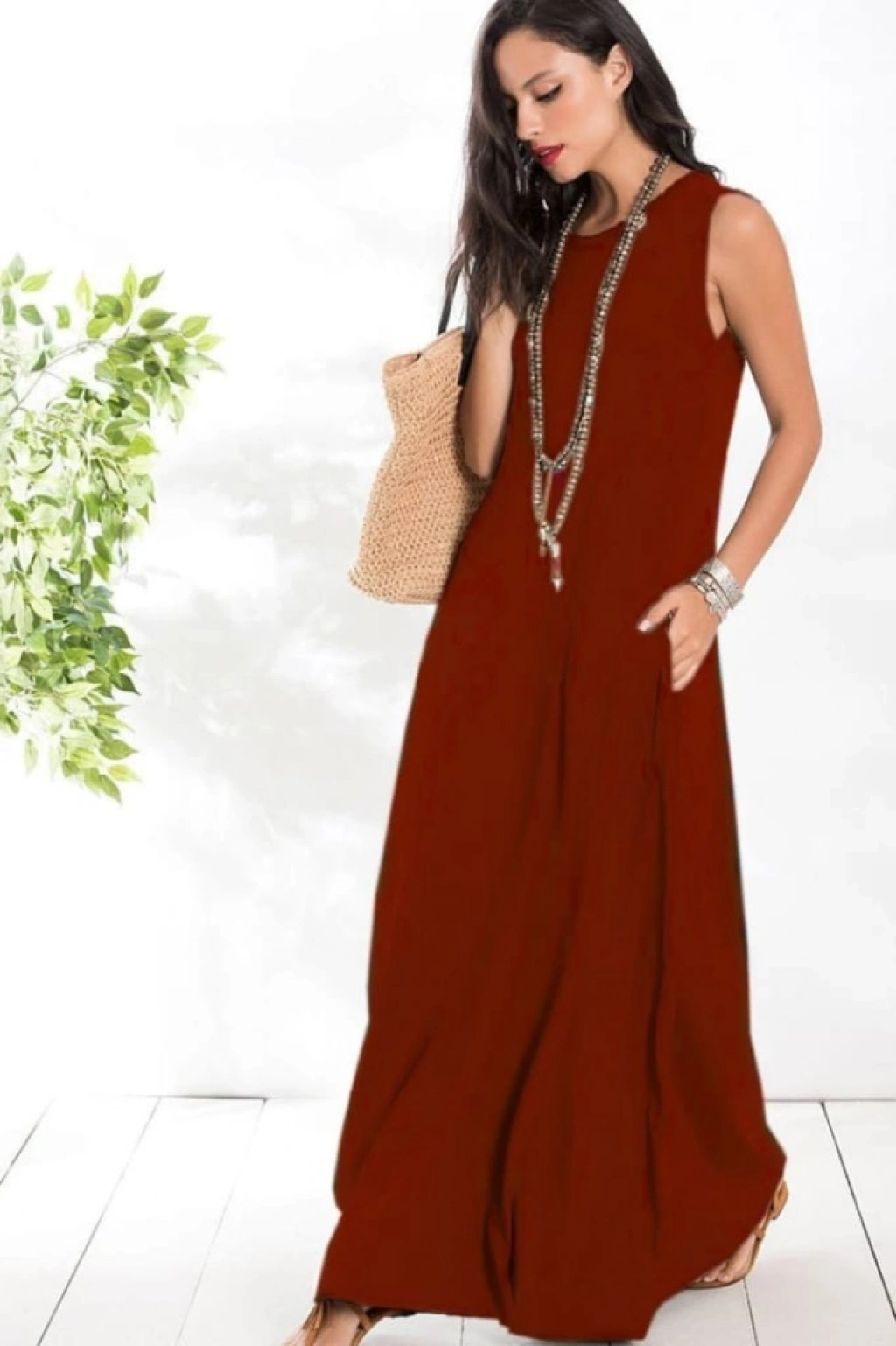 Kadın Sıfır Kol Kalın Askılı Viskon Tam Boy Elbise