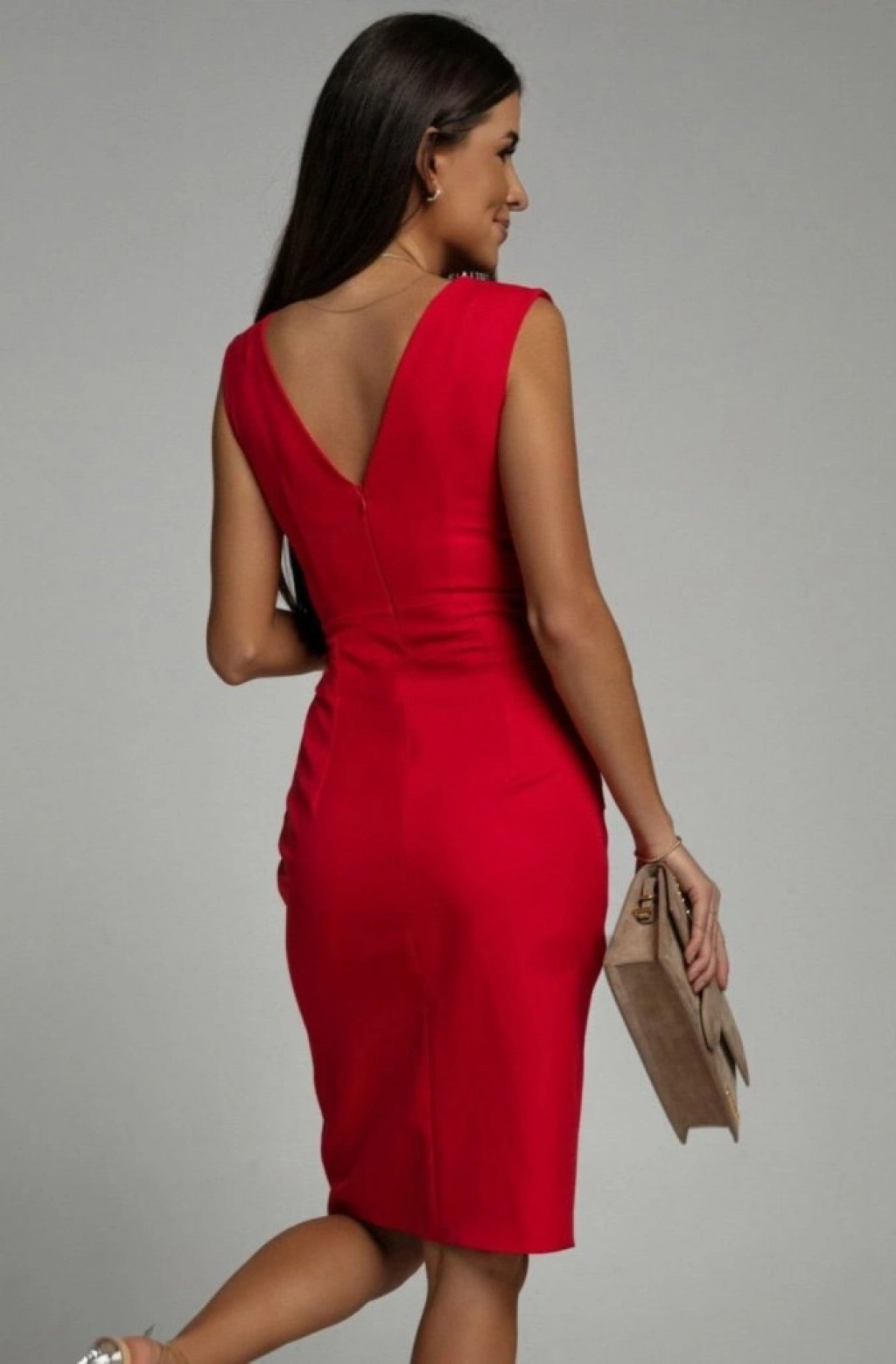 Kadın Sıfır Kol Kruvaze Yakalı Yırtmaçlı Ithal Krep Elbise