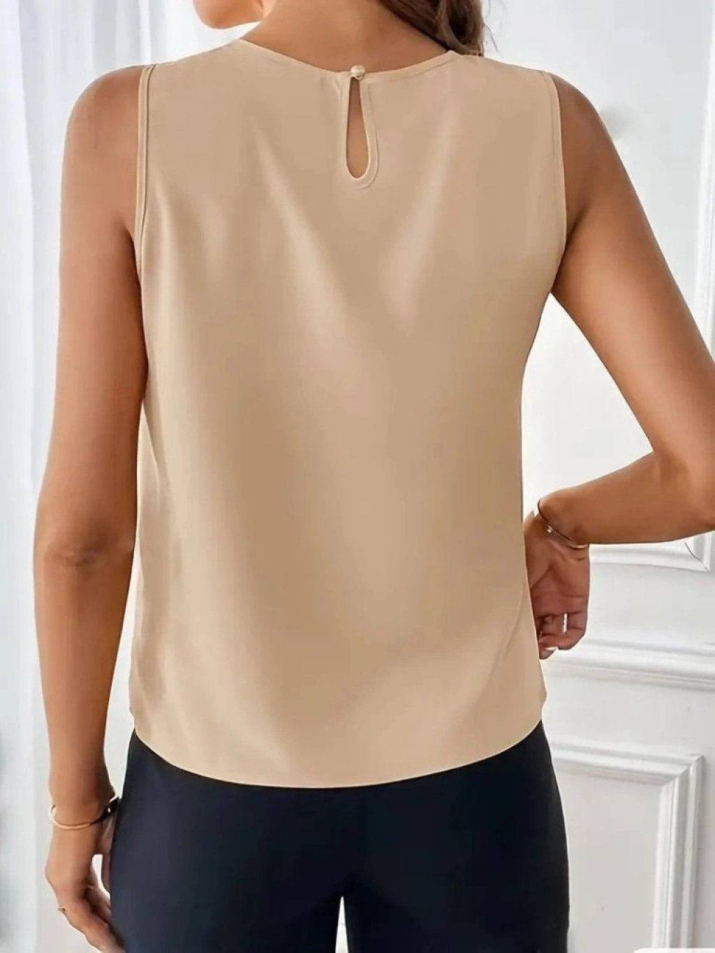 Kadın Sıfır Kollu Bisiklet Yaka önden Pileli Ithal Krep Bluz