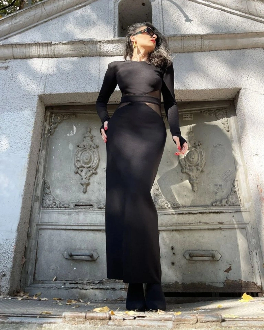 Kadın Sırt Ve Bel Transparan Dekolteli Fırsat ürün Maxi Boy Kalem Elbise