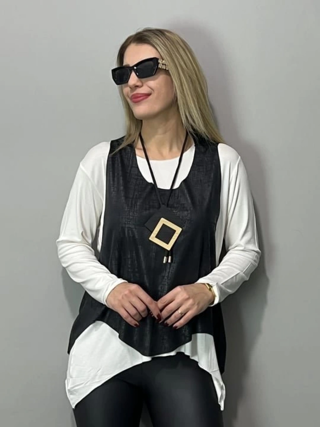 Kadın Siyah Deri Yelekli Kolye Dahil üçlü Takım