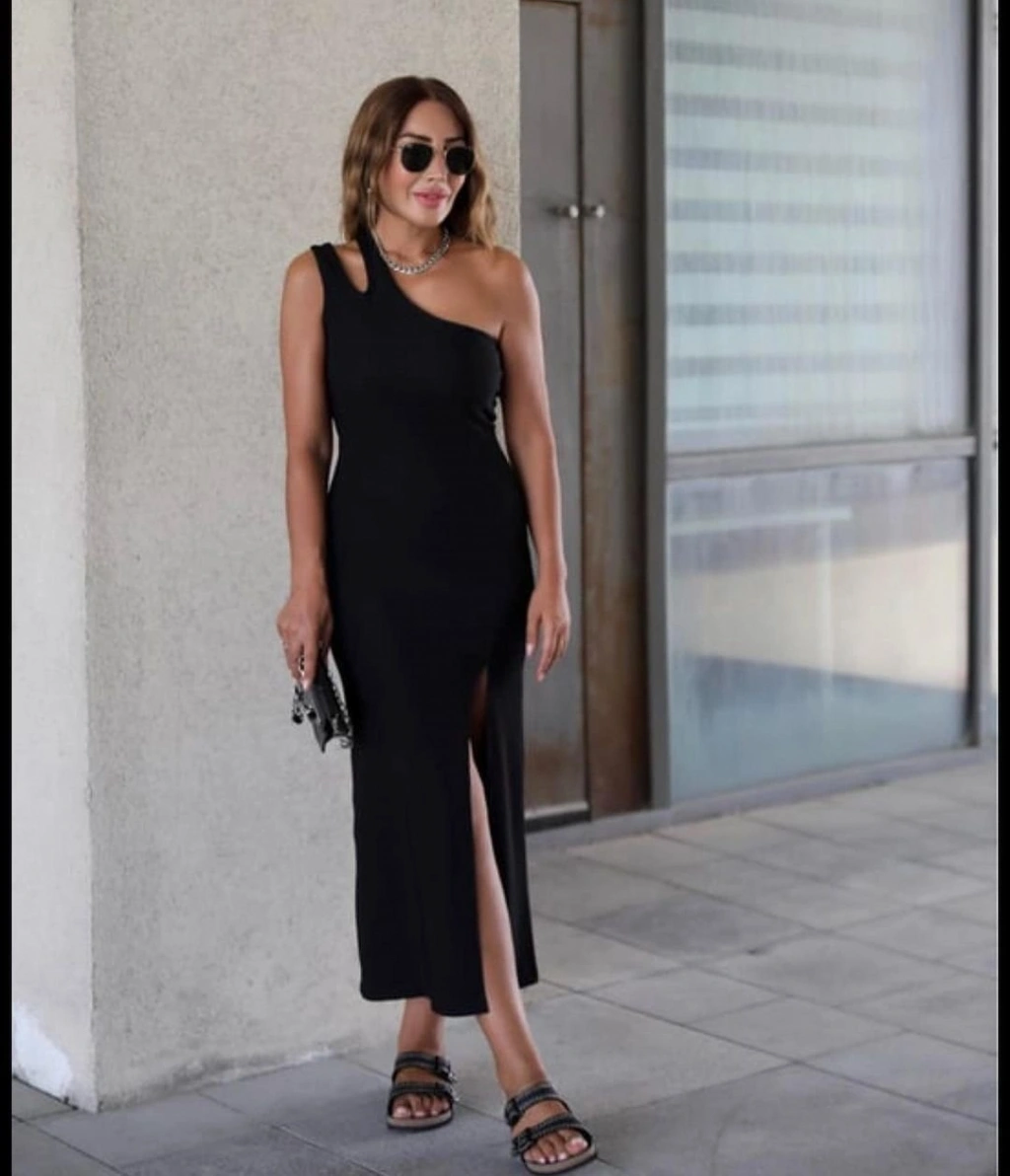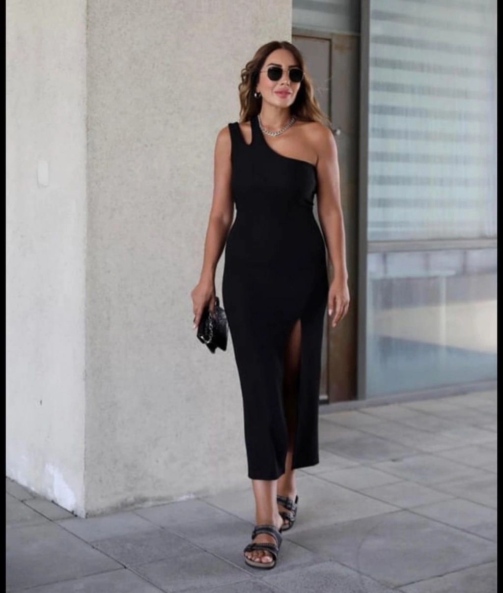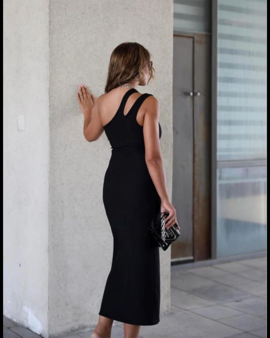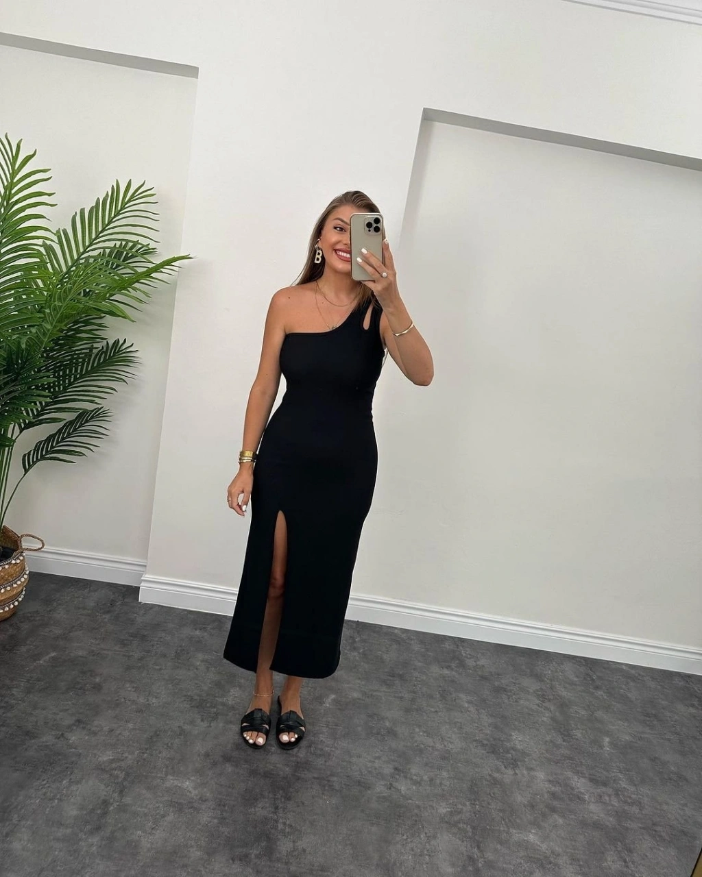 Kadın Tek Omuz Damla Detay Ottoman Kumaş Elbise