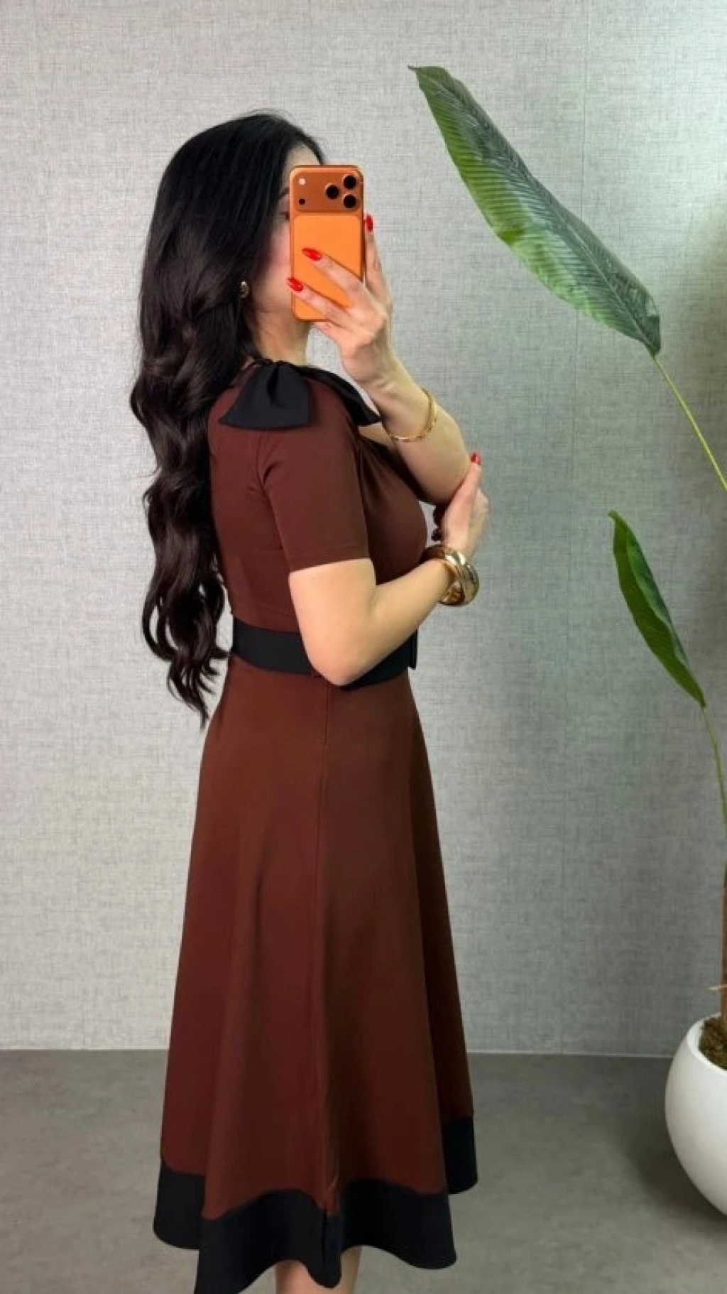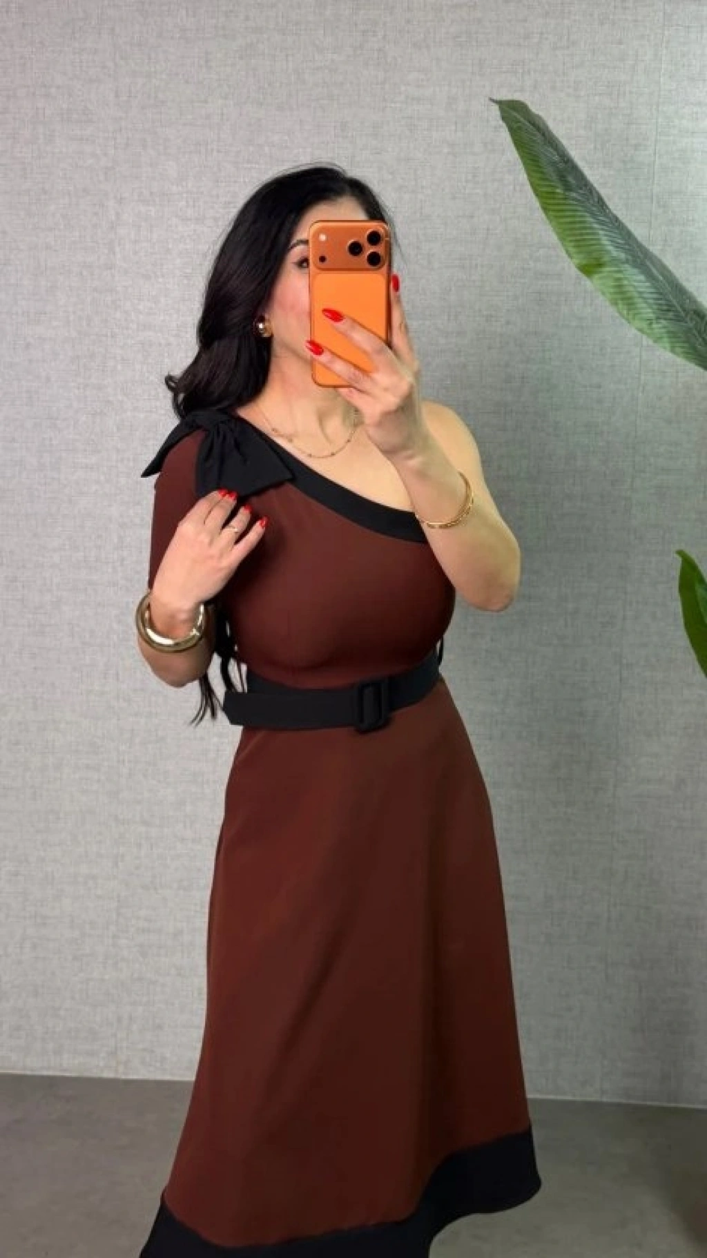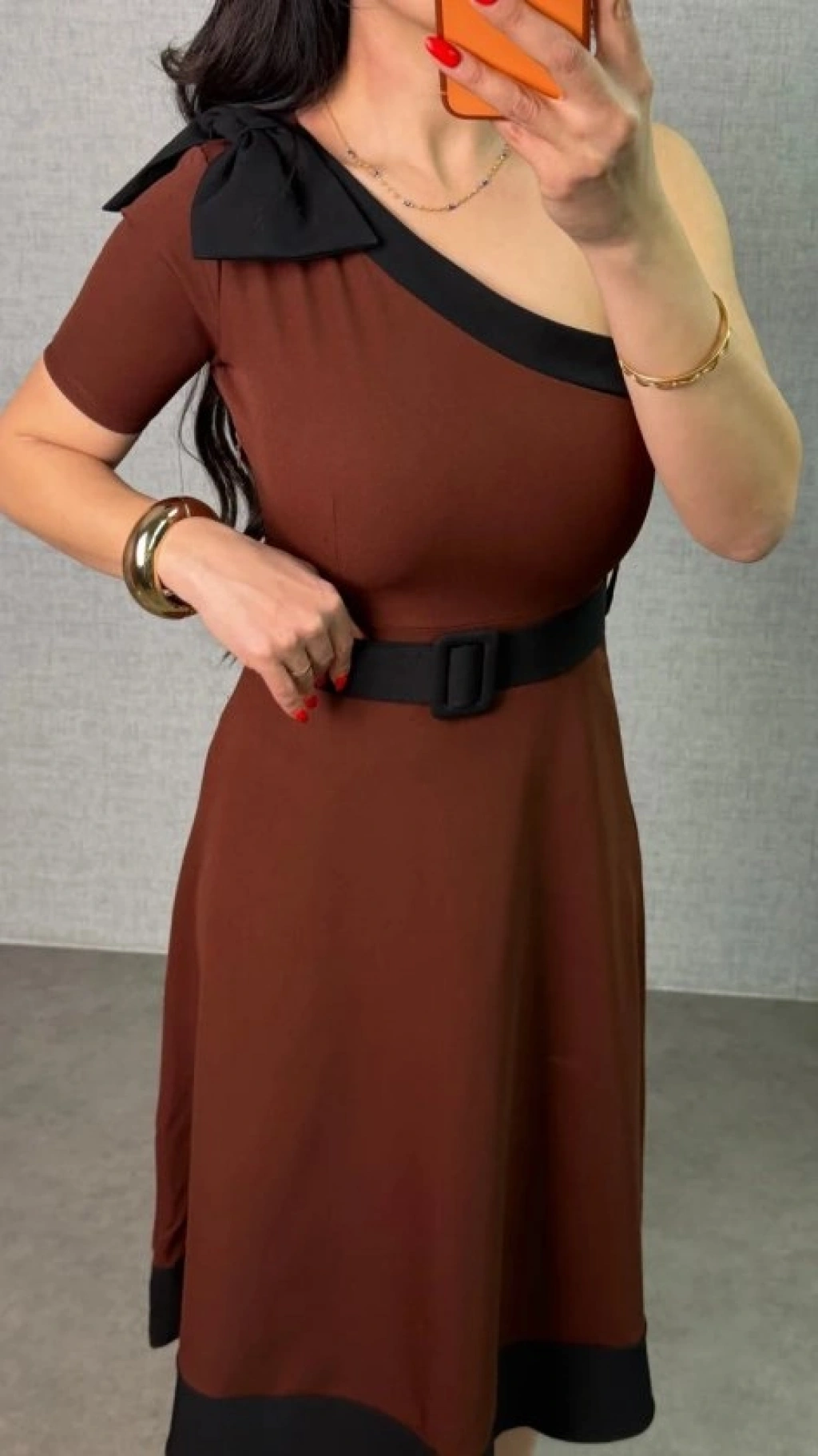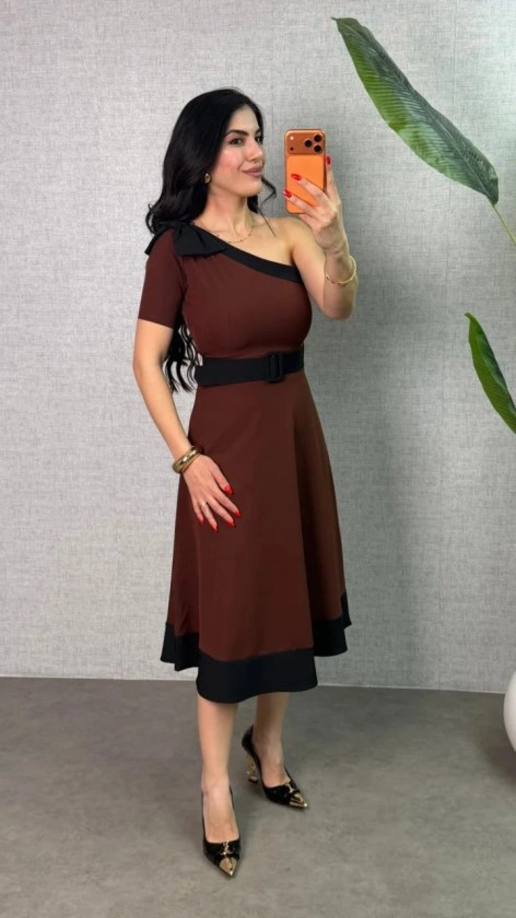 Kadın Tek Omuz Fiyonk Detaylı Midi Boy Elbise