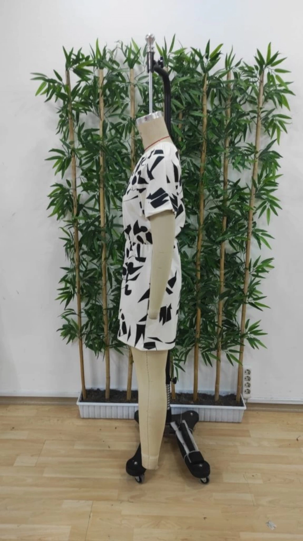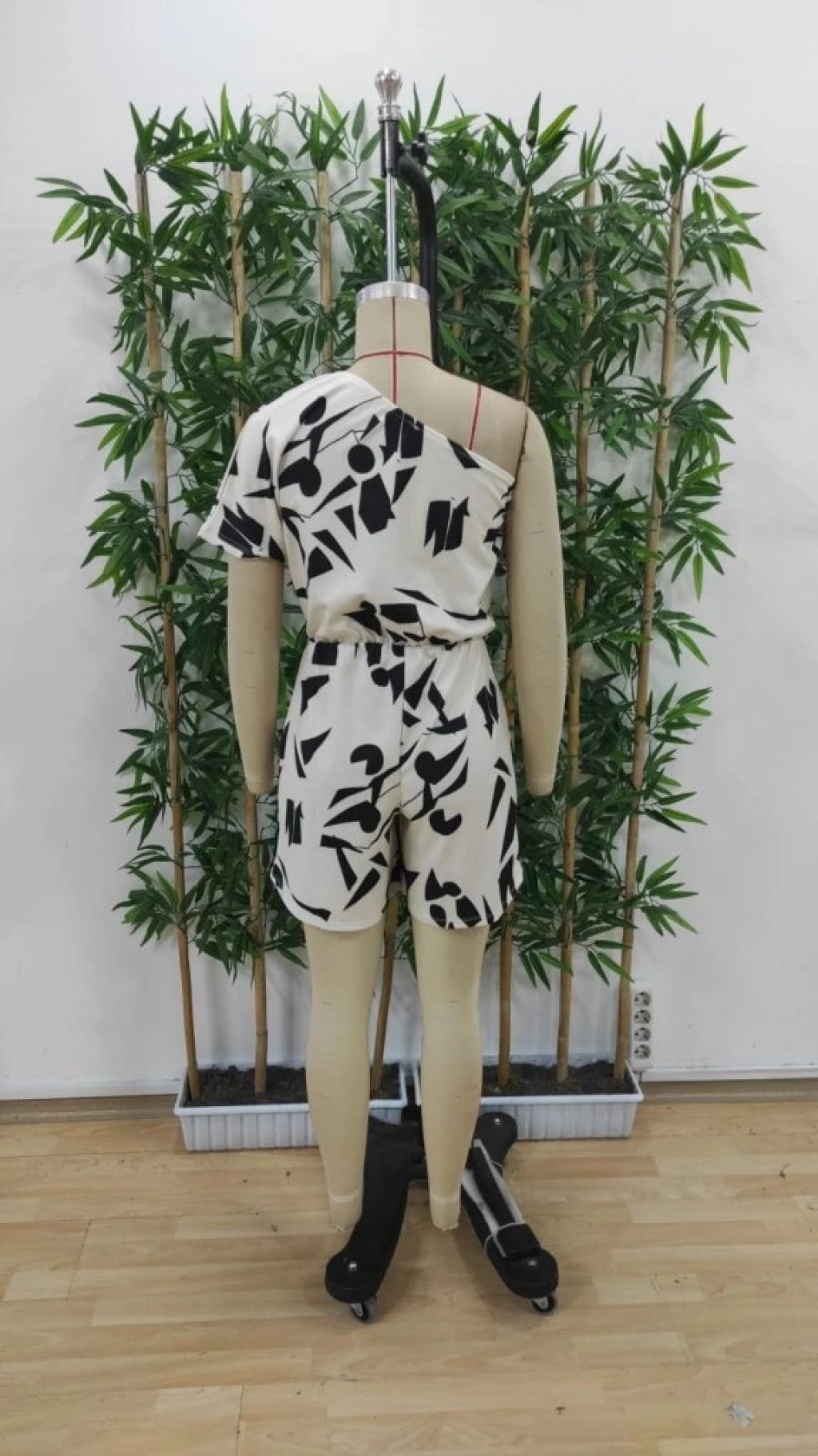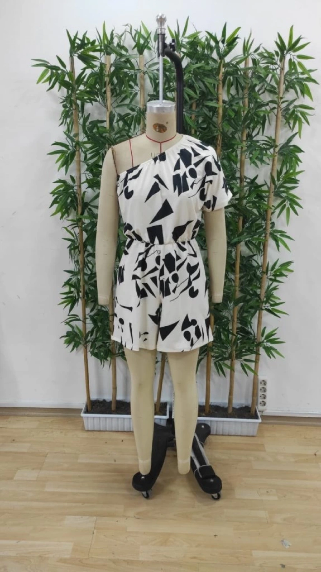 Kadın Tek Omuzdan Açık Beli Lastikli Desenli Süprem Tulum