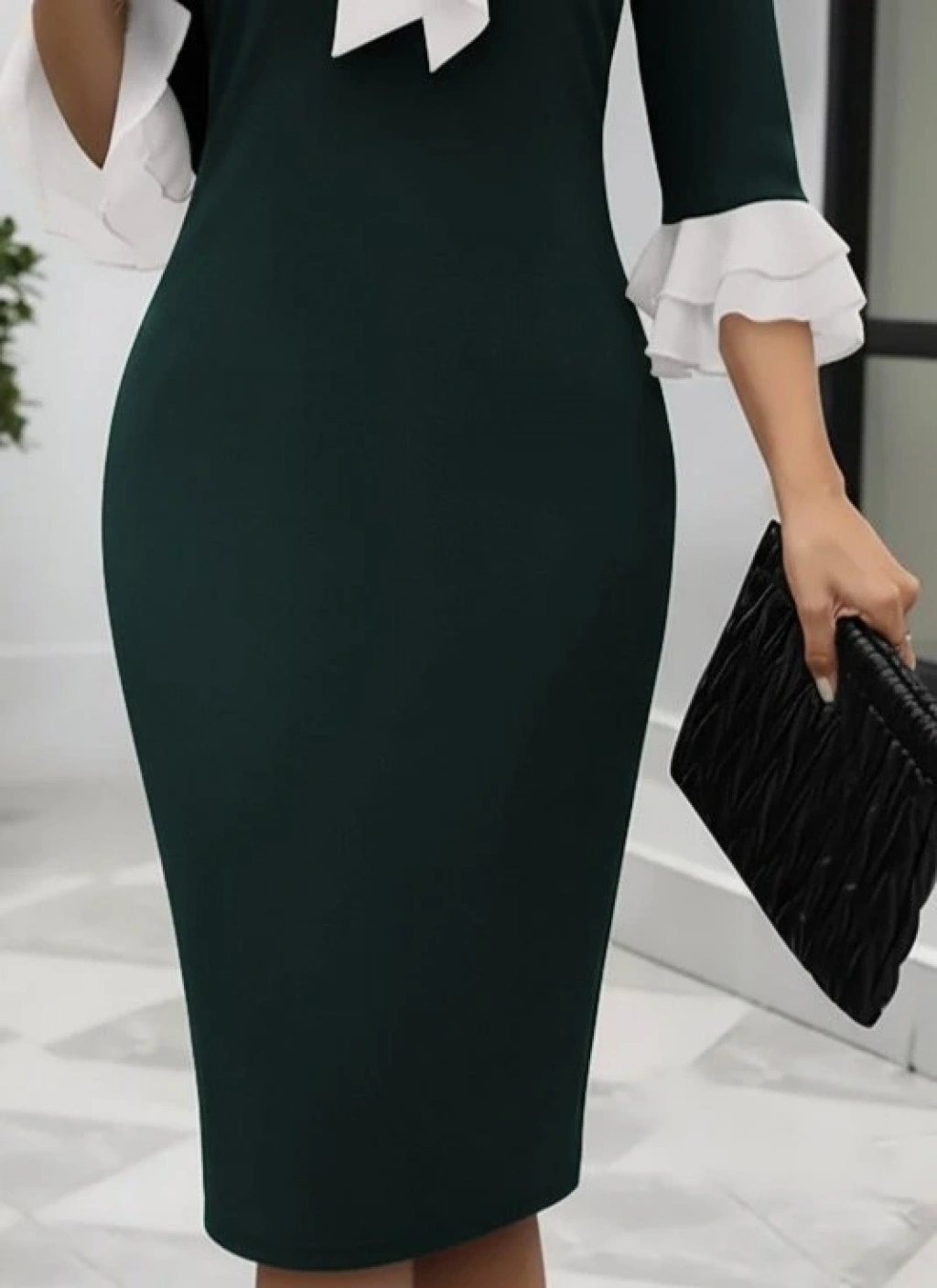 Kadın Truvakar Kollu Fiyonk Yakalı Midi Ithal Krep Elbise