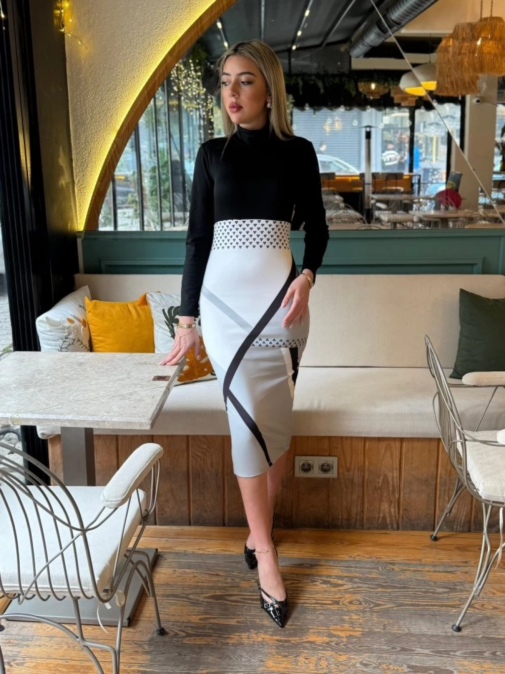 Modelin Ölçüleri: Boy:165, Kg:55, Göğüs:90, Bel:72, Kalça: 100