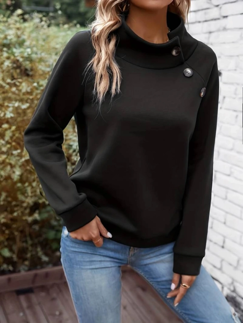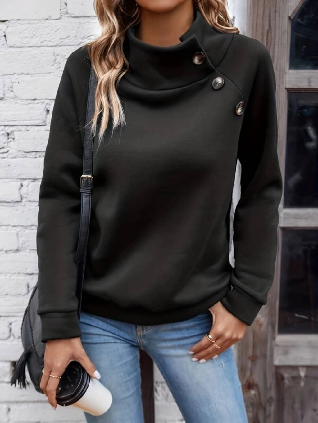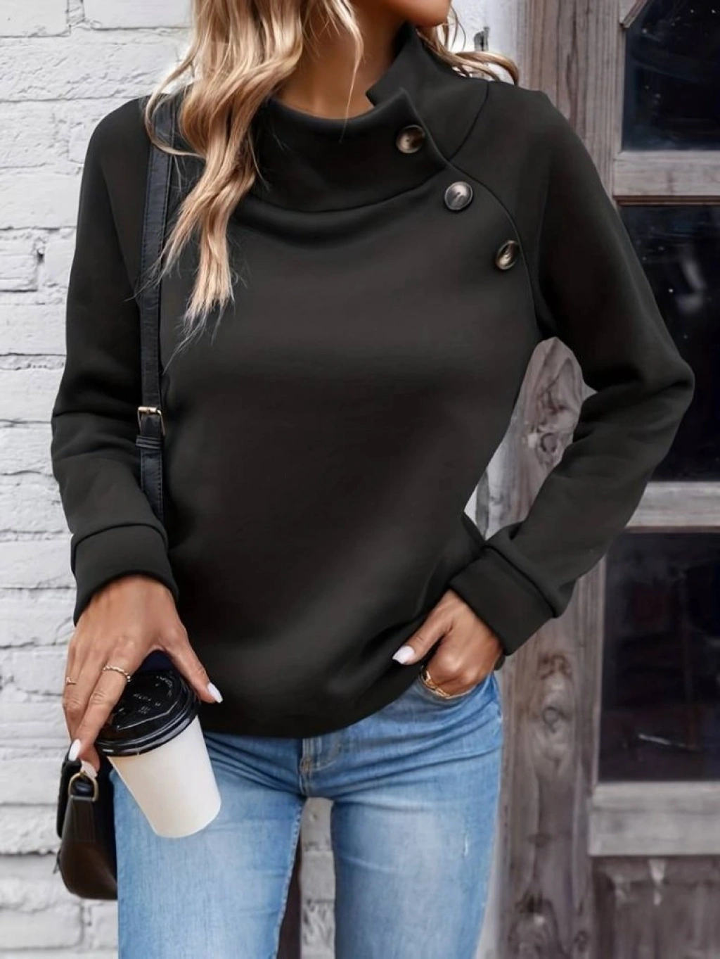 Kadın Uzun Kollu Balıkçı Yaka Düğme Detay şardonlu Dalgıç Bluz
